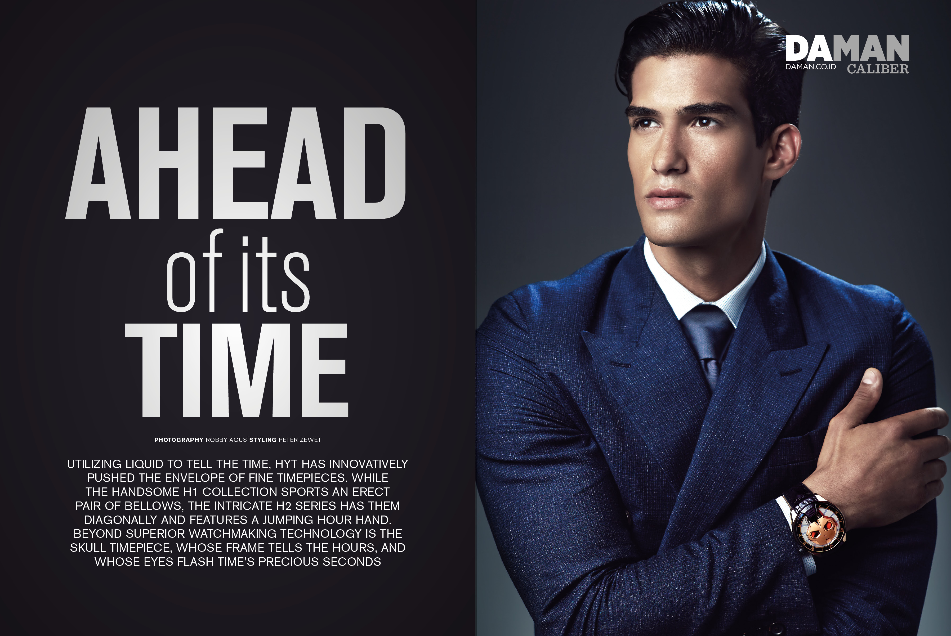 On the heels of a stylish editorial featuring the fall-winter 2015 collection of Kenzo, model Kaylan Morgan reconnects with Da Man for a sharp feature on timepieces. Modeling the latest styles from HYT, Kaylan poses for sartorial images lensed by photographer Robby Agus. Outfitted by stylist Peter Zewet, Kaylan impresses in sharp suiting from designer fashion brands. Sporting both single-breasted and double-breasted options, Kaylan dons suits from the likes of Givenchy and Dunhill London.