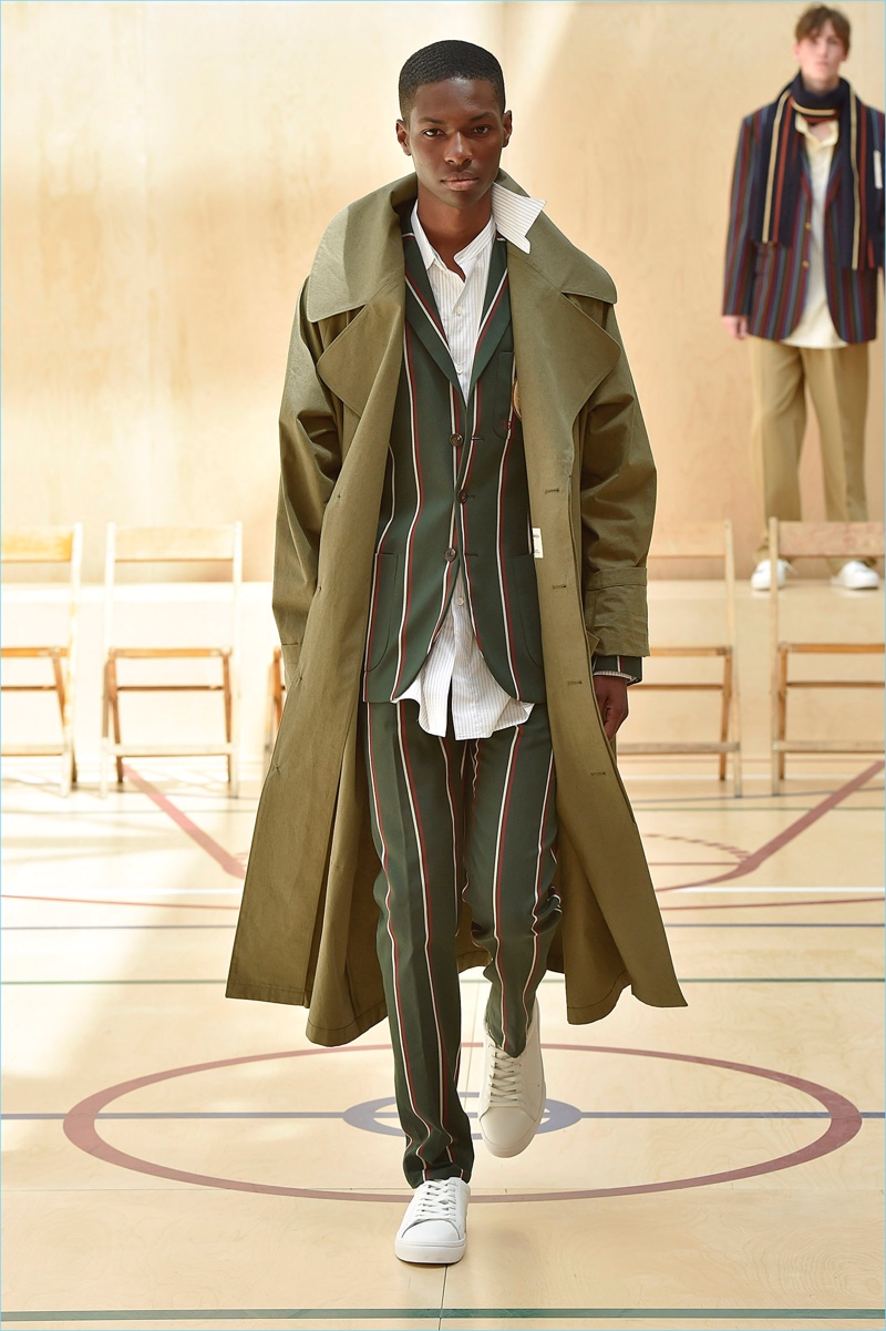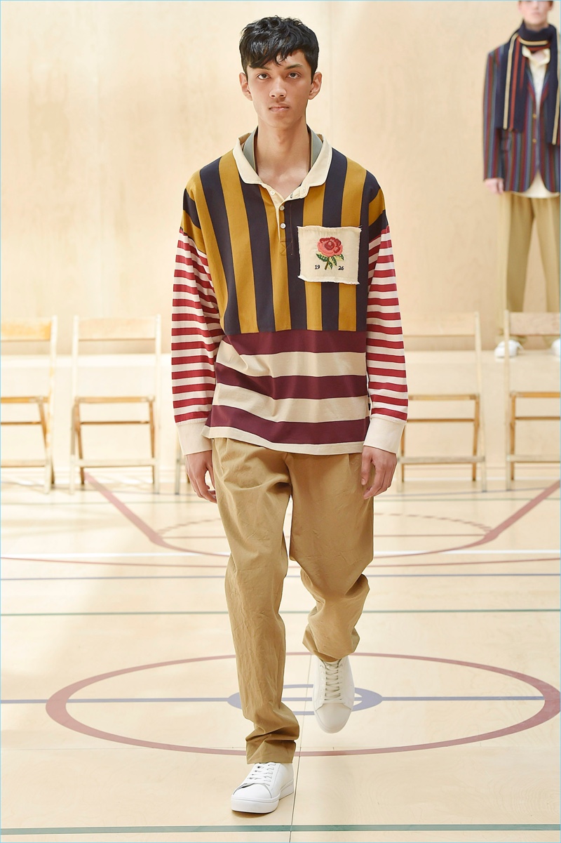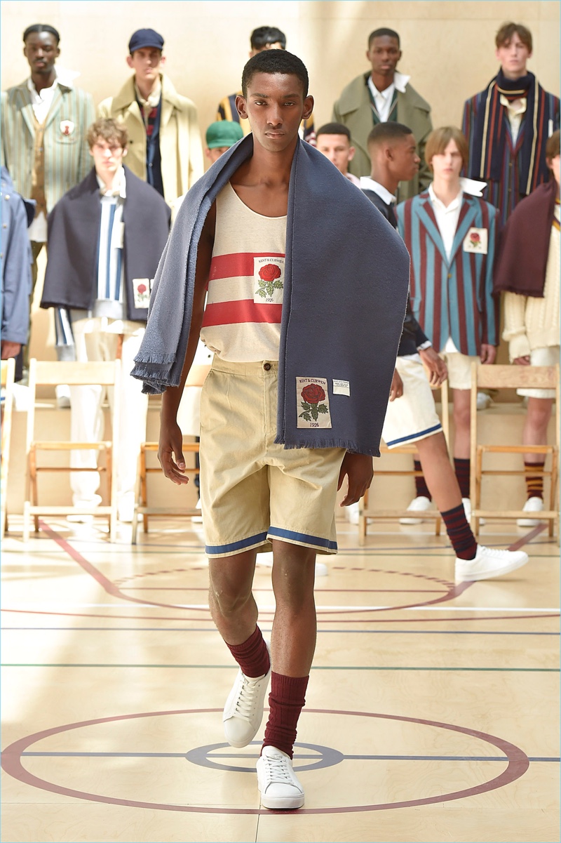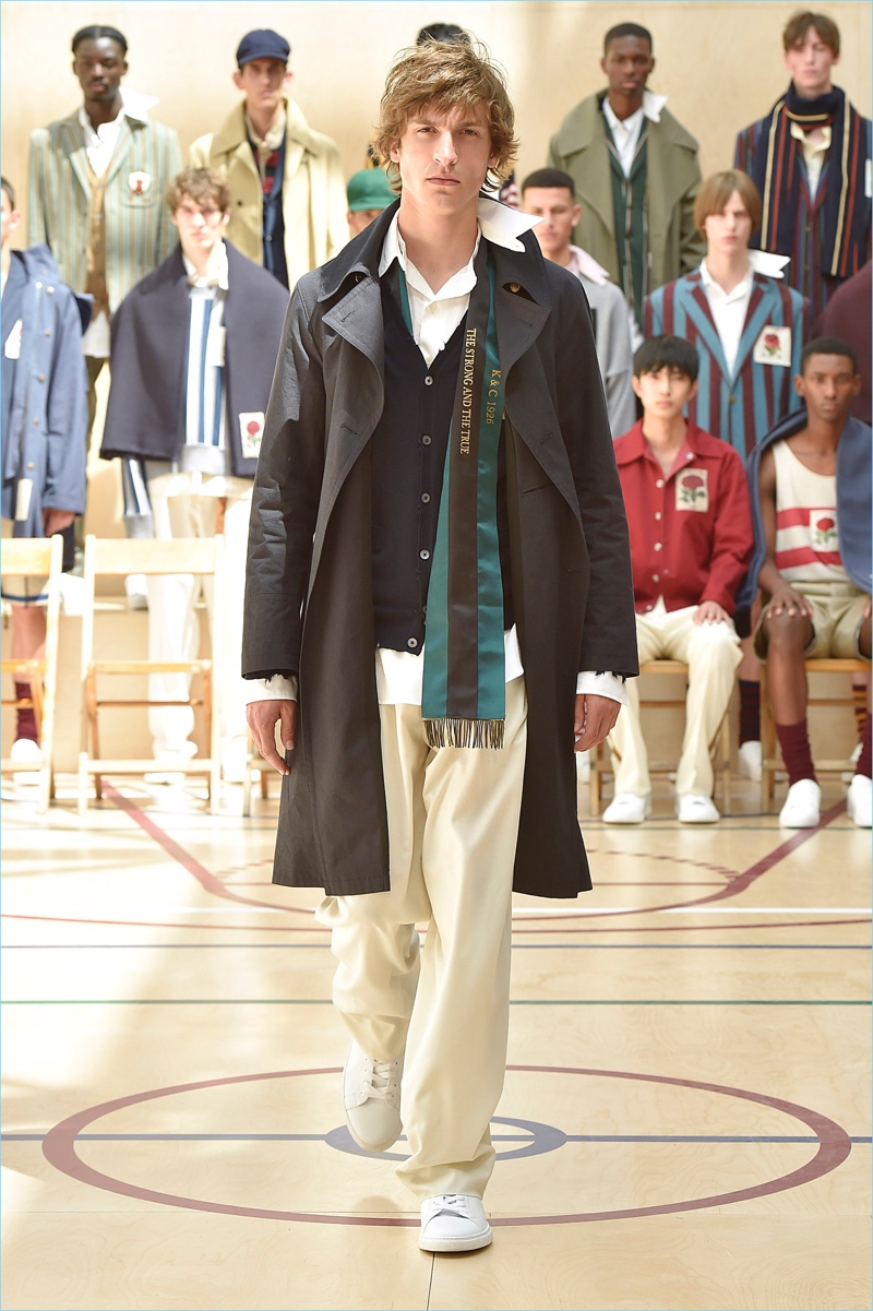 One of the world’s leading English stars, David Beckham brought a undeniable buzz factor to Kent & Curwen’s latest presentation. A business partner, Beckham helped the brand creative director Daniel Kearns unveil his spring-summer 2018 collection. Heritage-inspired sportswear takes center stage for the season.