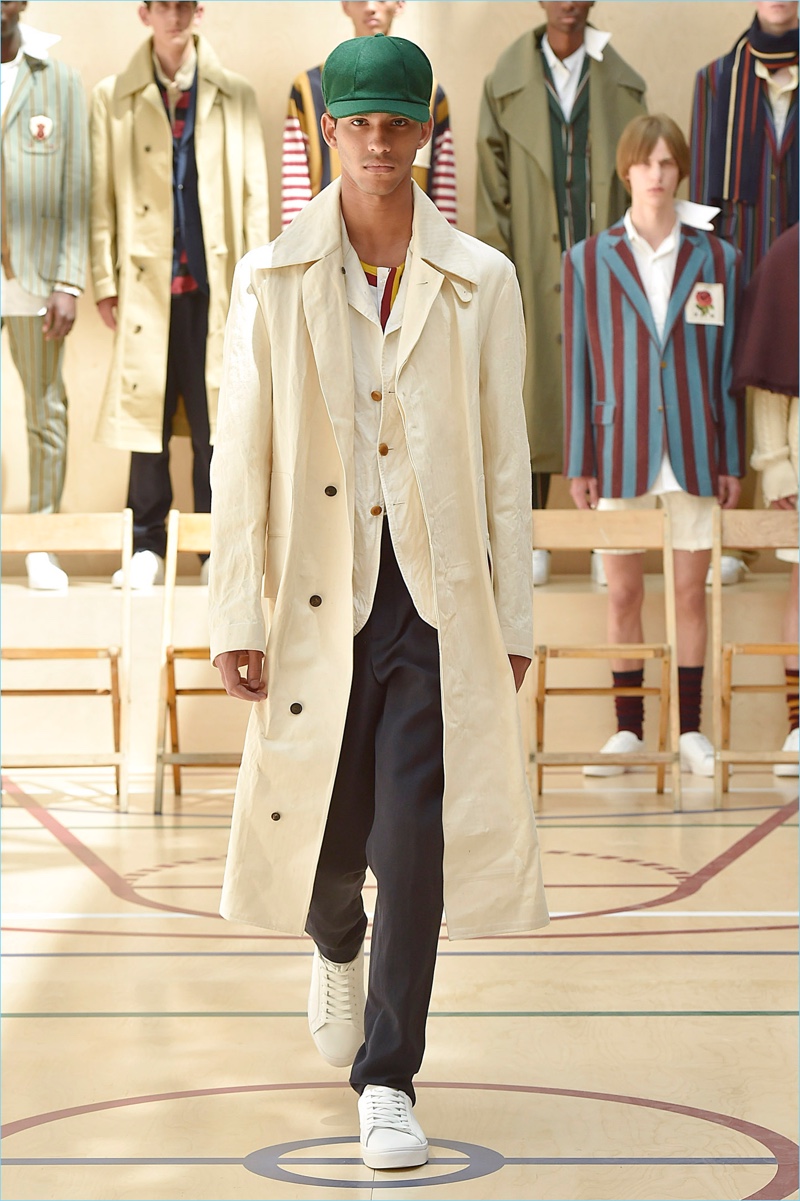 Kearns explains, “I love that everyman will have been part of a team at some point in his life. When designing this collection I was extremely interested in teams, the sense of belonging, being part of a set or gang.” The designer continues, “I like the way each member of a team breaks down their uniform, wearing the garments in their own individual way to express their personality.”