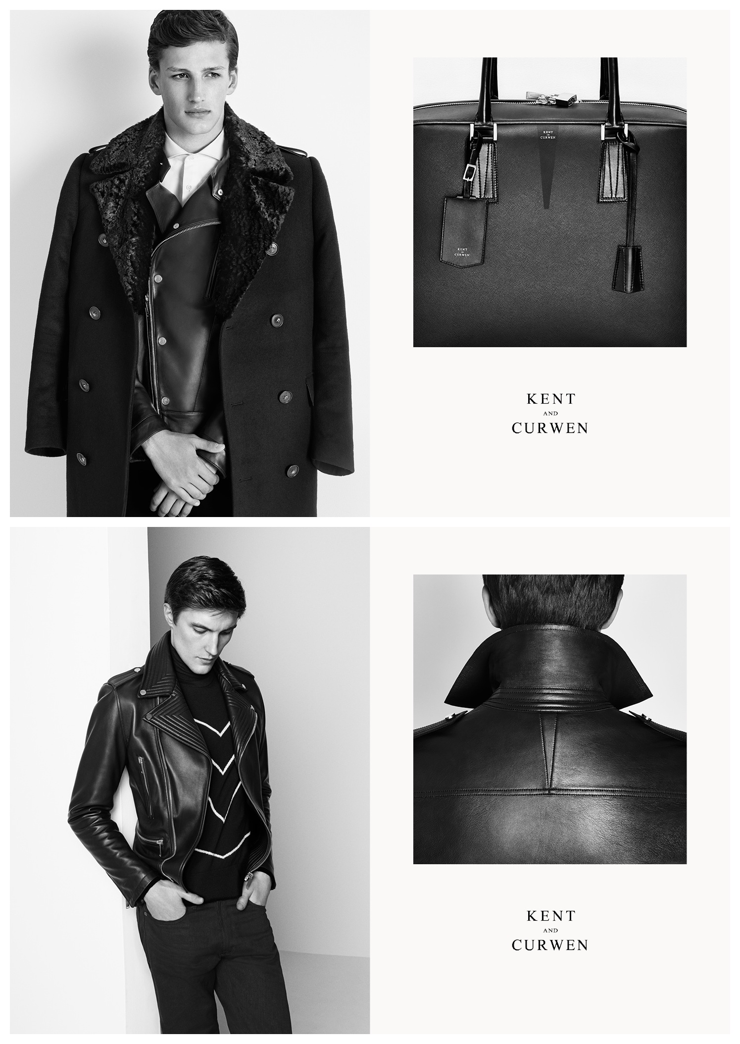 Kent and Curwen Fall/Winter 2014 Campaign-Photographer Eric Ray Davidson collaborates with British fashion label Kent and Curwen for its fall/winter 2014 campaign. Shot in studio, the new advertisement fittingly features British models Charlie Timms and Harry Chatfield. Posing on their own, each model wears strong fall looks, featuring Kent and Curwen’s signature leather. Big on tailoring, elegant shapes come together for a season that emphasizes outerwear and choice accessories.