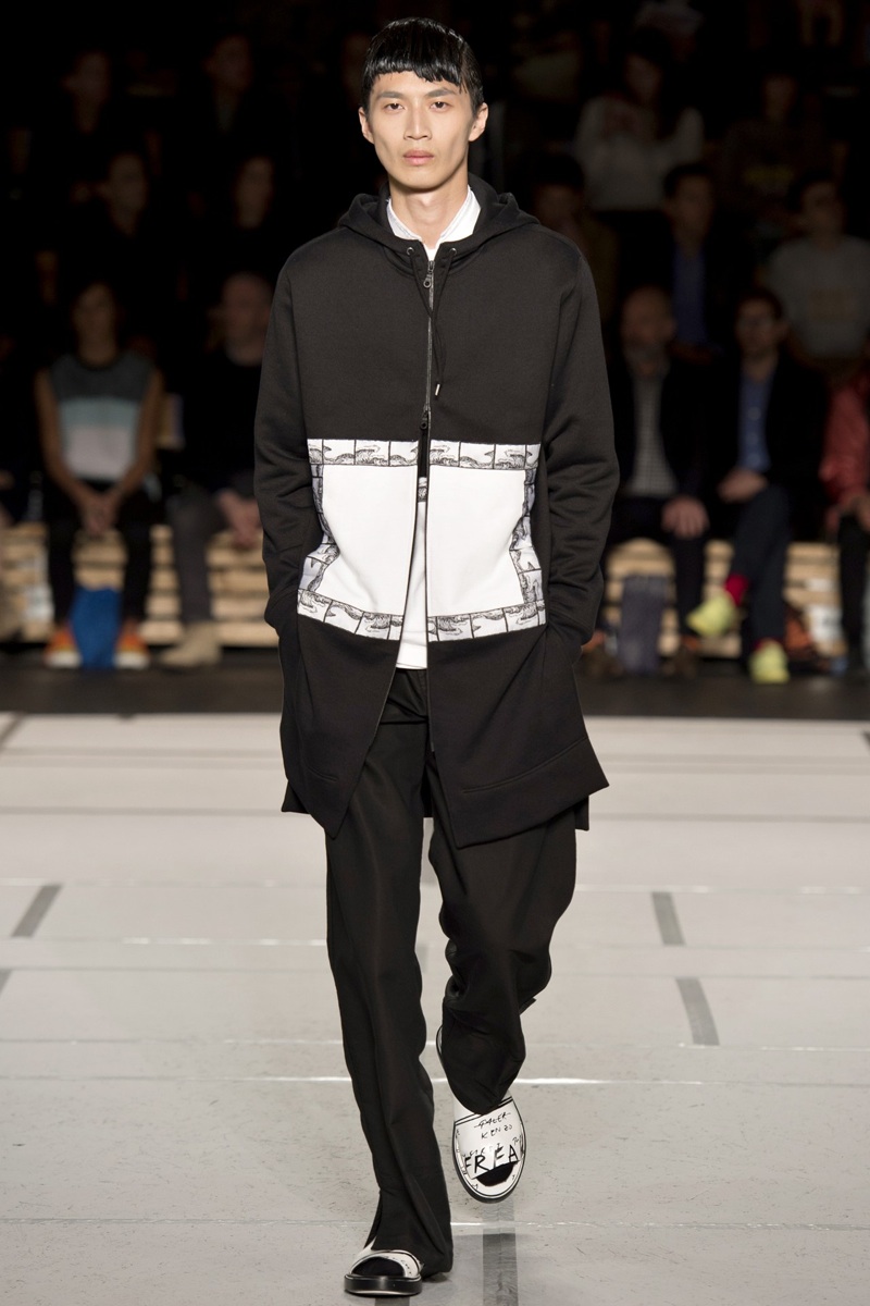 Kenzo Sport–Inspired by the laid-back style of California, Kenzo creative directors Humberto Leon and Carol Lim bring more sportswear to the French label. Cut oversized and boxy, an active wardrobe of pants, t-shirts, sports jackets and more are executed with modern details. From graphic prints to color blocking, the Kenzo man steps into the sports arena with a young attitude and brash casualness.
