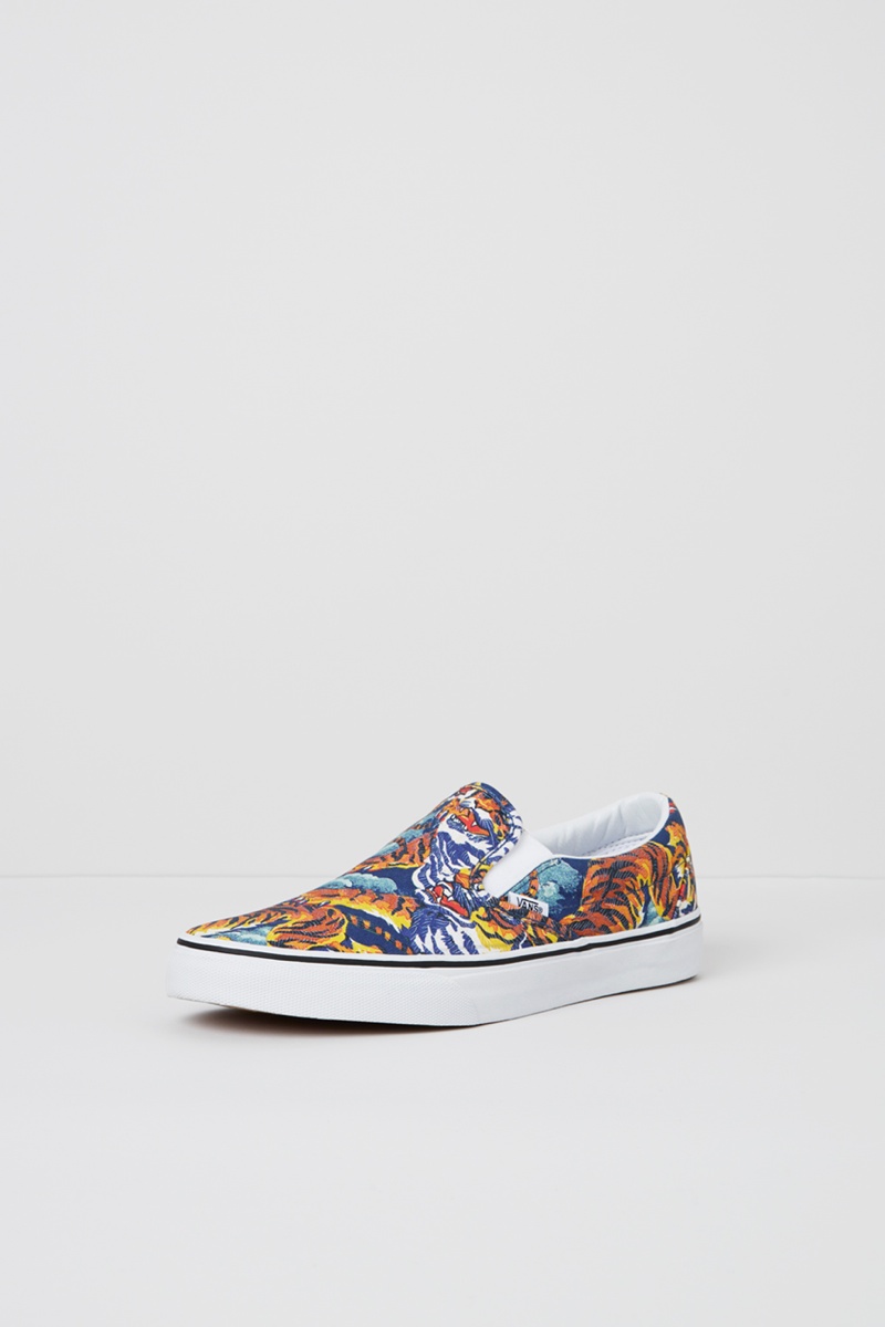 Kenzo x Vans-Their fifth and final collection with Vans, Kenzo produces three colorways, which include prints of flying tigers, lightening and clouds. Starting at a price of $125, the shoes are available from Kenzo and select retailers in Vans slip-on and Vans Authentic styles as well as the Vans Chukka.
