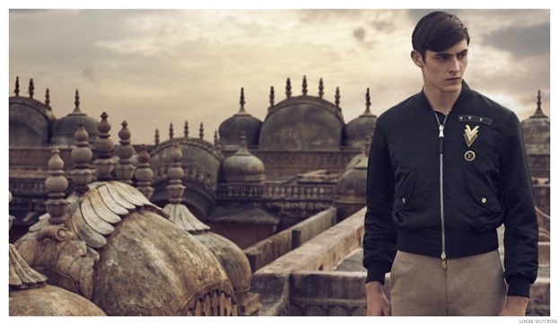 Louis Vuitton Spring/Summer 2015 Campaign–Louis Vuitton men’s style director unveils a first look at the fashion house’s upcoming spring-summer 2015 menswear campaign. Model up and comer Rhys Pickering connects with photographer Peter Lindbergh, who shot Louis Vuitton’s fall-winter 2014 campaign. Traveling to Jaipur, India, a storied backdrop sets the scene for this season’s well-versed traveler. A quiet but strong vision, Rhys models a chic bomber and trench from Louis Vuitton’s spring-summer 2015 men’s ready to wear collection.