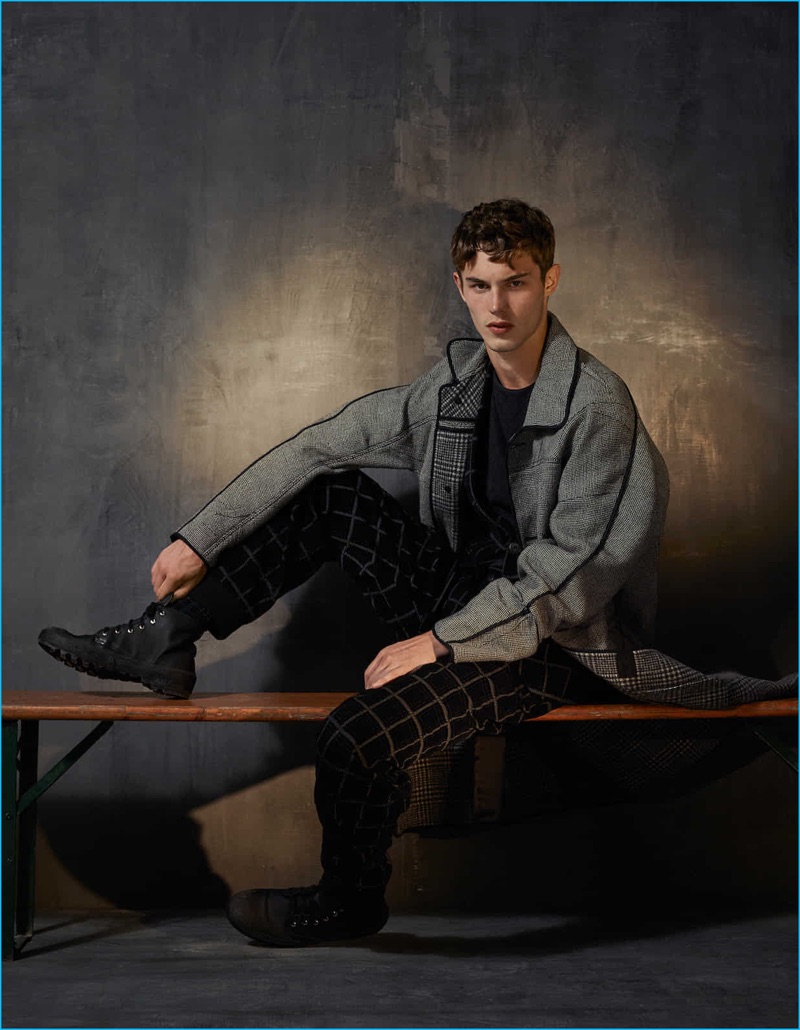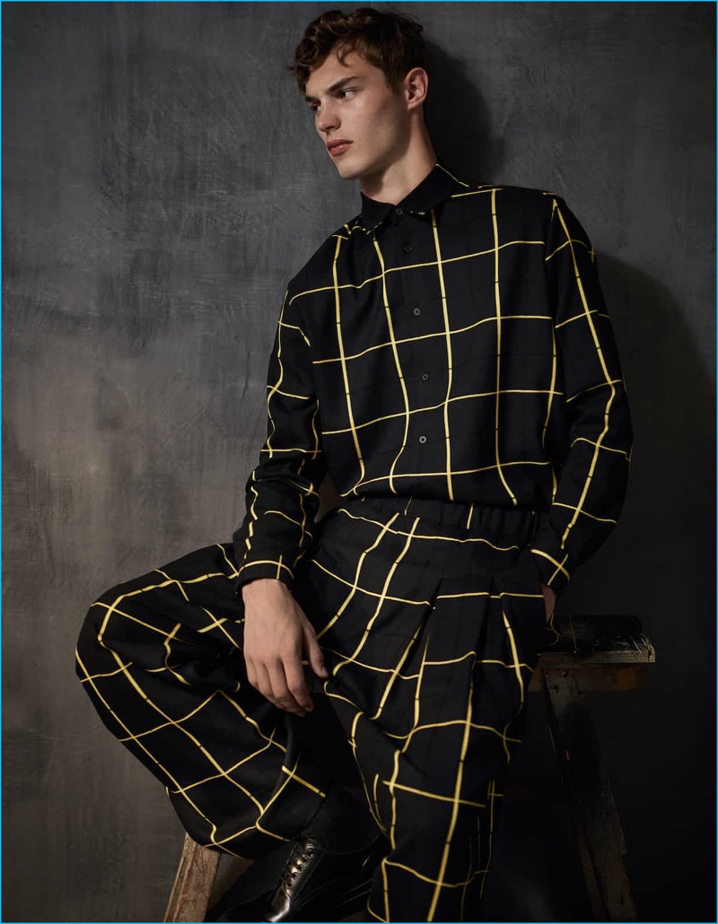 Photographer Damian Foxe reunites with The Financial Times to shoot a story for How to Spend It. Acting as stylist as well, Foxe creates a plaid narrative. Model Kit Butler steps into the studio, wearing designer fashions from the fall-winter 2016 collections. Kit dons a mix of relaxed and tailored proportions for the occasion. Checked standouts come from brands such as Bottega Veneta, Raf Simons, and Lanvin.
