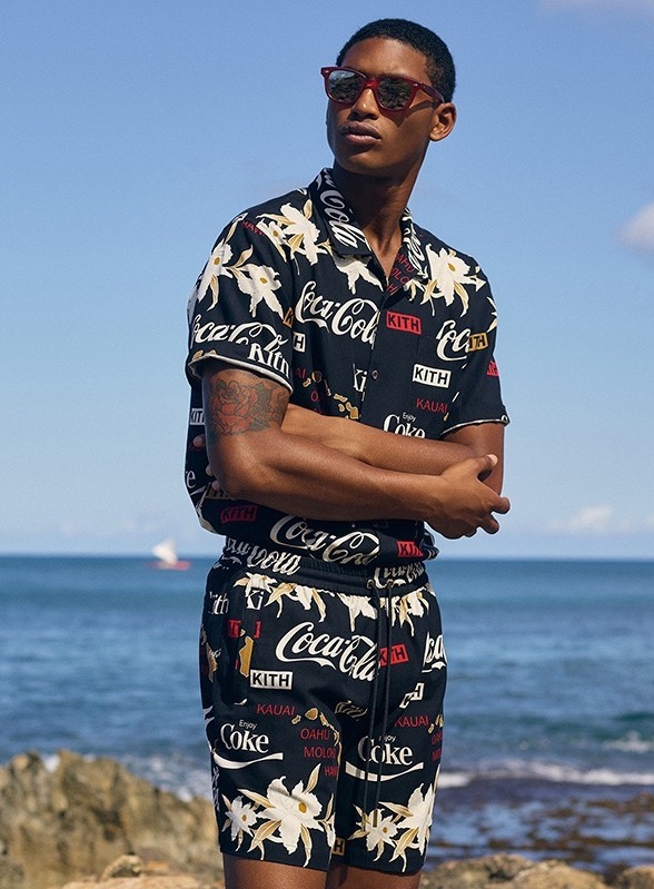 Embracing a Hawaiian theme, KITH collaborates with Coca-Cola on a capsule collection. Models Timothy Lewis and Josie Canseco take the special range for a spin as they hit the beach. Wearing KITH x Coca-Cola-branded fashions, Timothy is front and center in everything from swim shorts and shirts to a bucket hat. The capsule collection even results in a surfboard. Over 105 items come together for the lineup, which is available at KITH retailers and KITH.com.