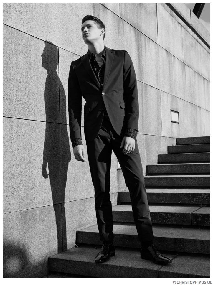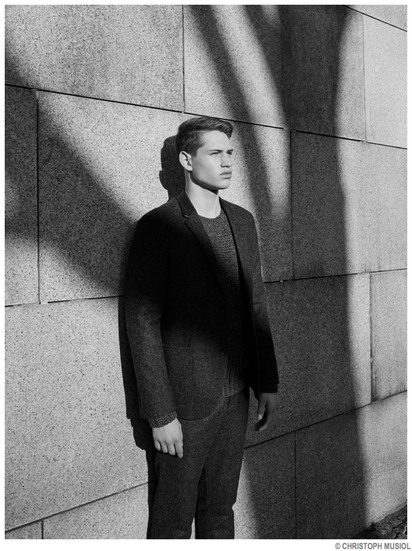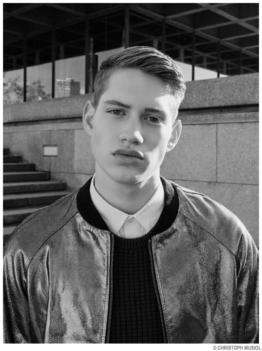Mega Models Hamburg fresh face Kjel Dorndorf enjoys a pleasant day out as he connects with photographer Christoph Musiol for an outdoors series. Exuding a boyish charm, Kjel is outfitted by stylist Lena Hoffmann. / Grooming by Kerstin Hoffmann (Basics).