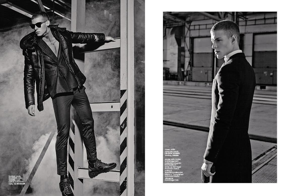 Marie Claire CZ celebrates the release of Spectre with a James Bond themed editorial. M Management model Kristof Kralik stars in the fashion shoot, venturing outdoors as he steps into the cool, stylish shoes of an international spy. Wearing striking suiting and outerwear from the fall collections, Kristof is photographed by Norbert Zsolyomi. Wearing brands such as Prada and Moncler, Kristof is styled by Eli van Poeyer for the black & white fashion editorial.