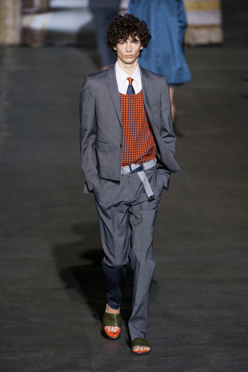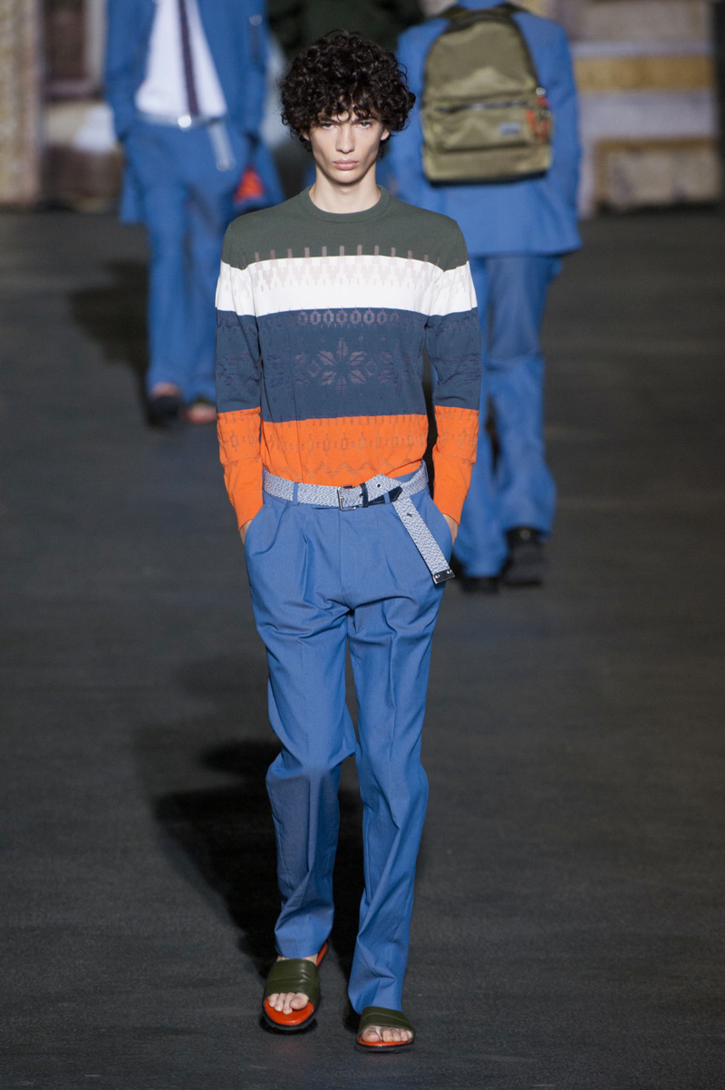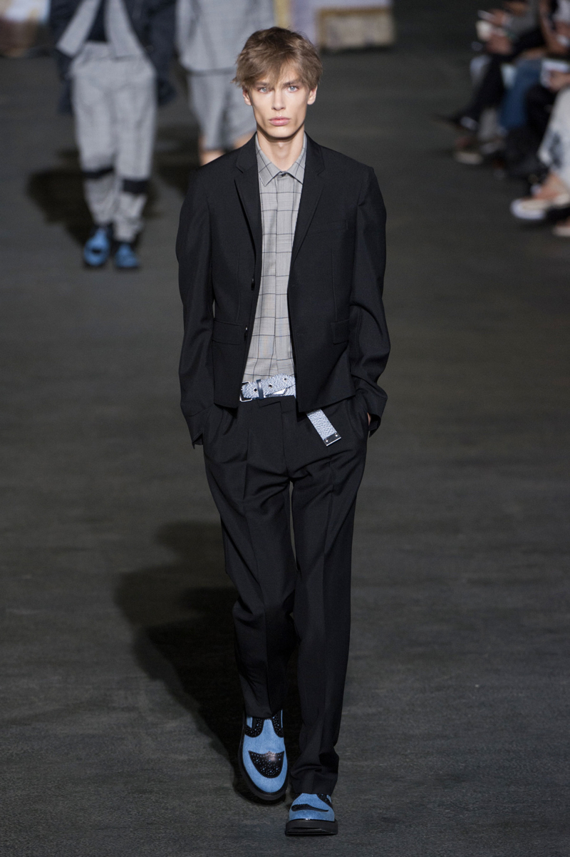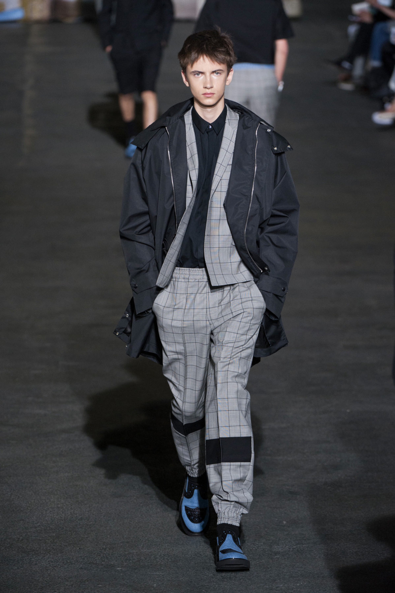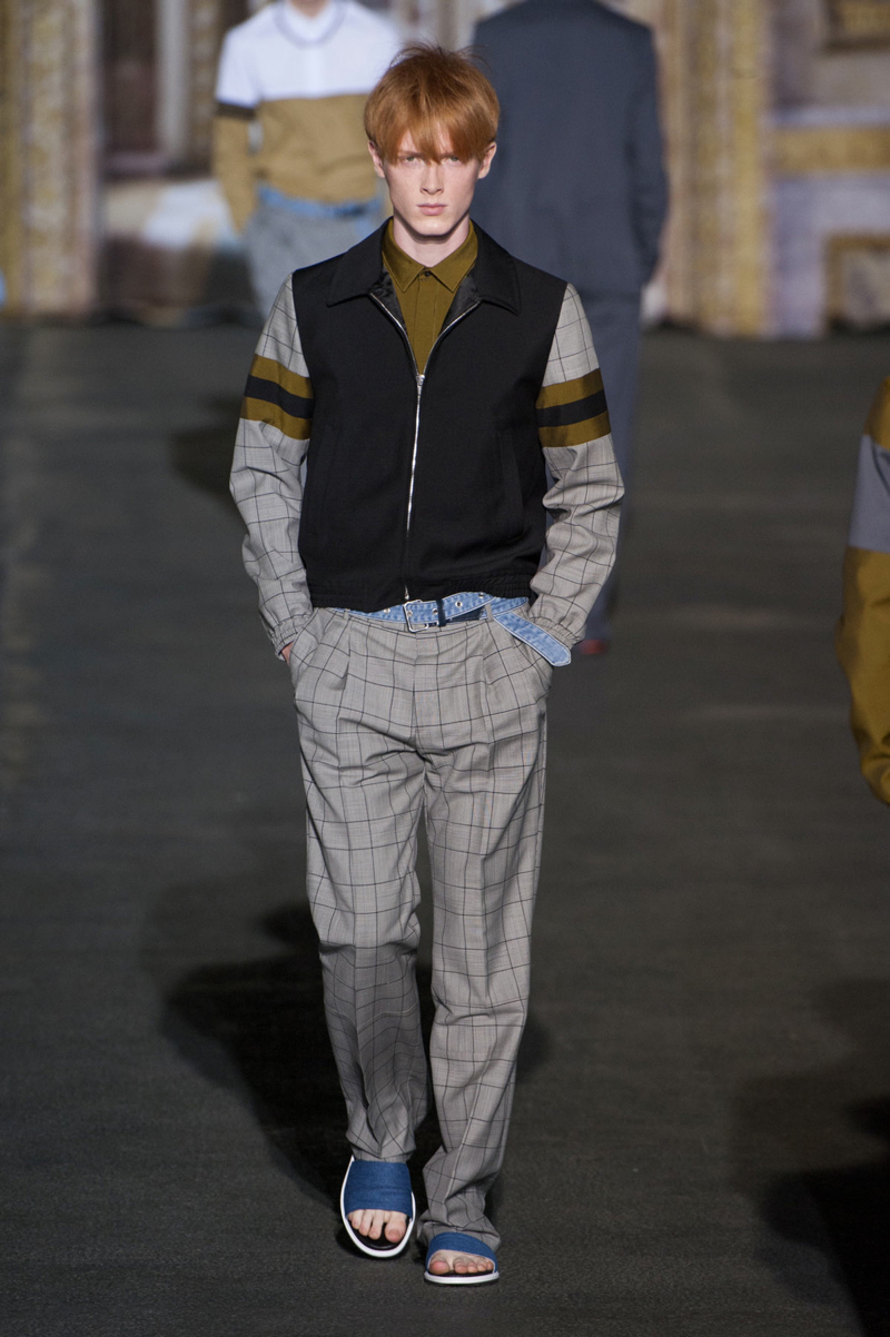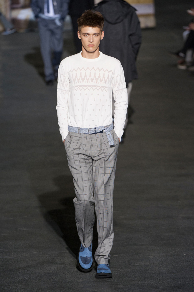 KRISVANASSCHE Spring/Summer 2015–Add Belgian designer Kris Van Assche to the mix when it comes to next season’s denim trend. However, standing out from his peers, Van Assche remixed the menswear classic, using it as trim for a collection of sophisticated sportswear. The collection at large was about mixing and matching, delivering the unexpected in a tasteful manner. Similar to denim, trousers and tailored shorts were ripped for a casual statement. Denim belts tied the collection together as well as color blocked tops and understated prints.