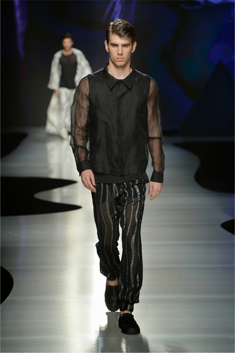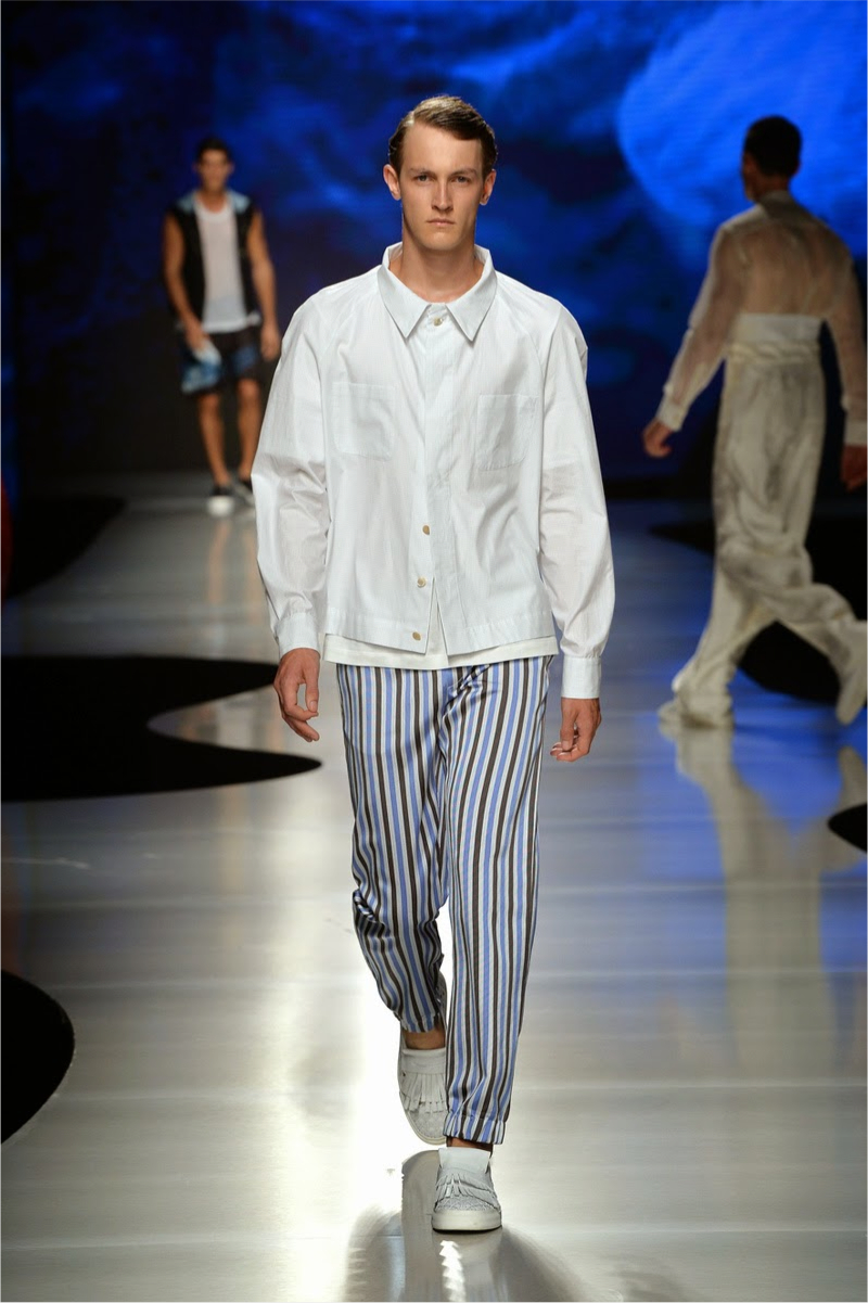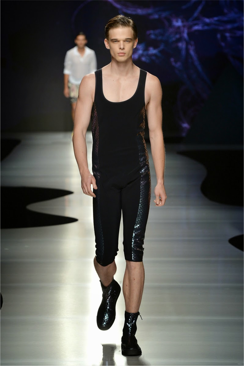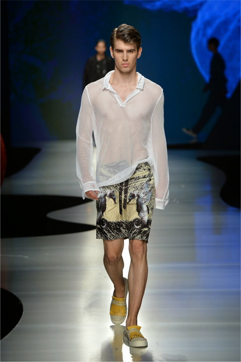 La Perla Spring/Summer 2015–How on the heels of its spring/summer 2015 lookbook, La Perla presented its collection on the catwalk during Pitti Uomo. Along with its elegant lineup of silk kimonos, sheer tops and billowing pants, the label presented loungewear in the form of comfortable hooded tops and slim-cut joggers. For the adventurous, the label debuted metallic numbers that confused us a tad, but hey, surely there’s someone out there in search of metallic men’s lingerie.