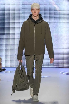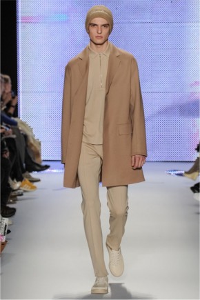 Lacoste Fall/Winter 2014–For fall/winter 2014, Lacoste creative director Felipe Oliveira Baptista was inspired by a series of images he captured last year while visiting the Basque region in France. Baptista paid a visit to Chantaco, a golf course which was built in the late 1920s by Rene Lacoste’s father-in-law. Enjoying the golf course, Lacoste’s wife Simone Thion de la Chaume as well as his daughter Catherine were golf champions. Inspired by the nonchalant elegance of Chantaco, Baptista brought a relaxed sophistication to the city for an urban collection of leisure. Dressed in a dark color palette, simple silhouettes gave birth to a wardrobe of sporty suits, oversized coats, sweatshirts and other modern essentials.