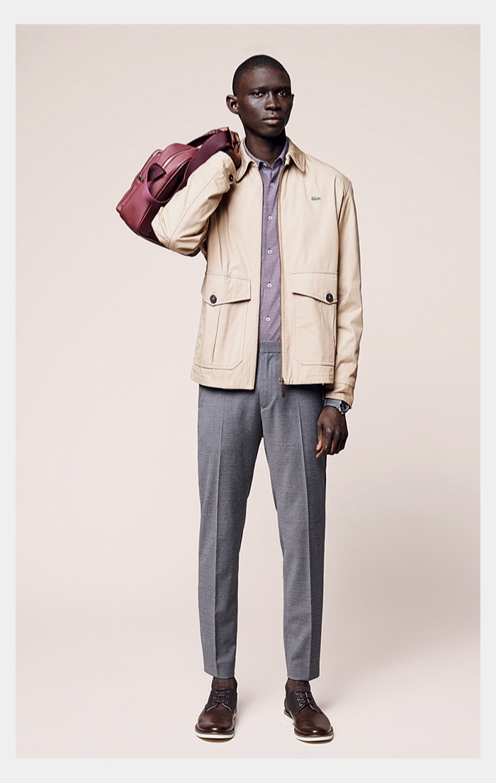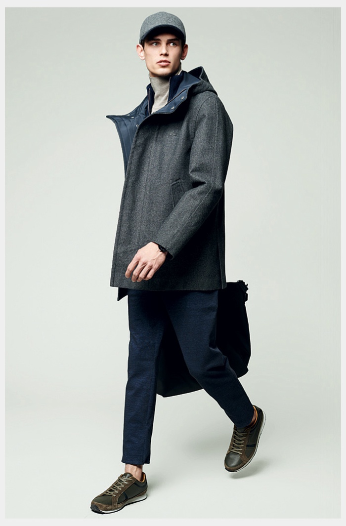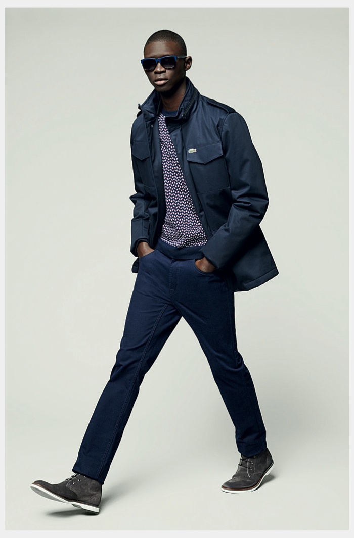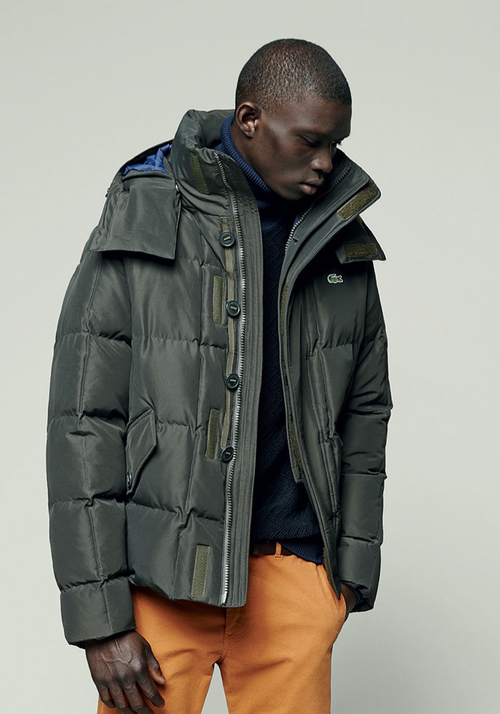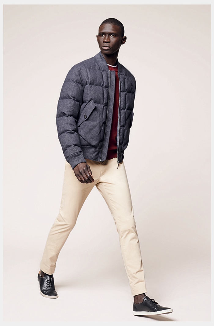 Lacoste Men Fall/Winter 2014–Reinforcing its sporty heritage, Lacoste embraces active shapes and fits for fall/winter 2014. Tapping models Arthur Gosse and Fernando Cabral for the accompanying lookbook, fall kicks off with earthy sentiments. Navy, burgundy and green dress a straight-forward wardrobe. Sweatshirts, quilted bomber jackets, polo shirts and other timeless essentials are adorned with the label’s iconic alligator. Meanwhile, comfortable sweatshirts, boxy outerwear and smart accessories round out a collection with a certain ease and finesse.