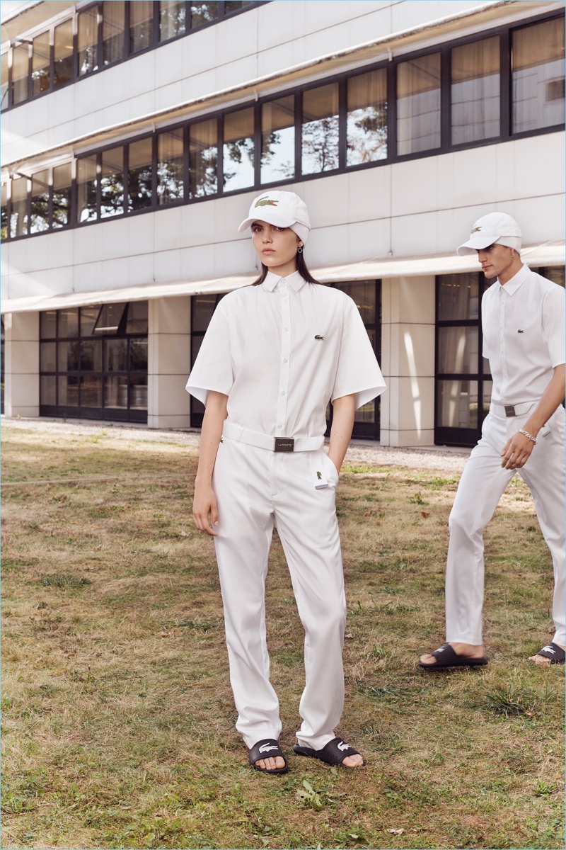 Lacoste embraces a unisex appeal with its spring-summer 2019 collection. The French brand pays a nod to streetwear with a sporty wardrobe of timeless pieces. An element of the nineties is woven into Lacoste’s “sportcore” style. Photographer Craig McDean captures the season’s lookbook. Knowing no gender, Lacoste icons such as the polo shirt come together with track pants, sweat shorts, pullovers, and more. Showcasing the unisex looks, models Simon Bornhall, Julien Gaenza, Sora Choi, and Lily Stewart pose for the lens of McDean.