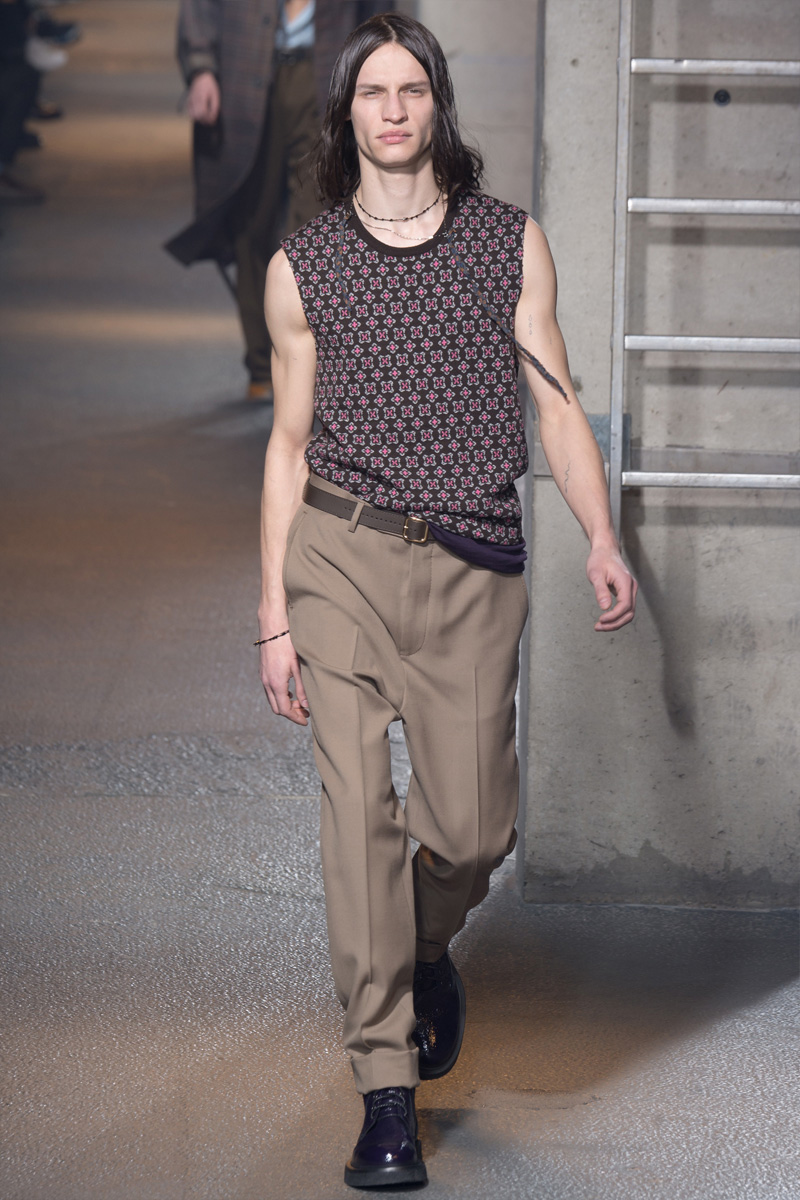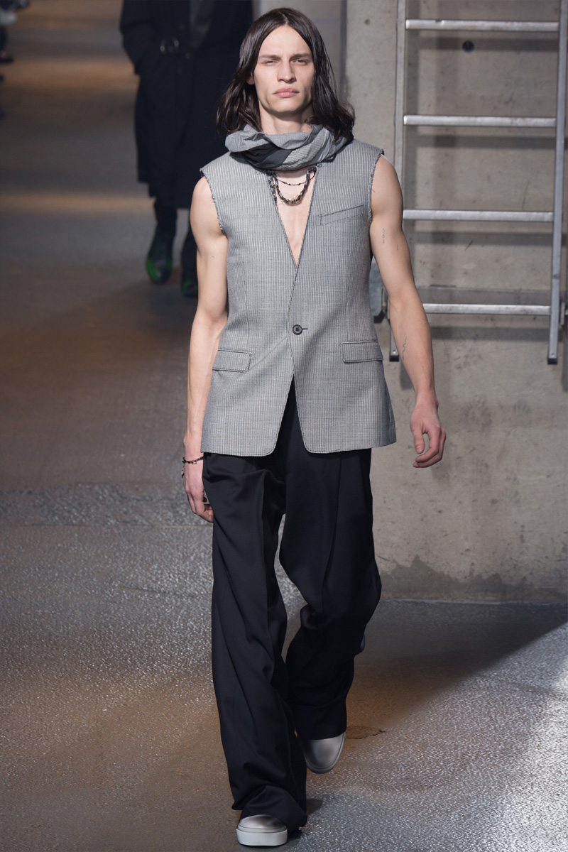Unveiled during Paris Fashion Week, Lanvin’s most recent men’s collection marked designer Lucas Ossendrijver’s first outing since the ousting of the label’s creative director Alber Elbaz this past October. Maintaining Lanvin’s modern aesthetic, Ossendrijver embraced relaxed silhouettes, crafting a collection of irresistible separates. Long coats were seamlessly draped and paired with billowing trousers. Models in slouchy unbuttoned shirts took to the catwalk, wearing creepers and trainers. Luxurious leather jackets, patterned short-sleeve shirts and sleeveless tops joined a range of plaid outerwear for a well-rounded range of cool.