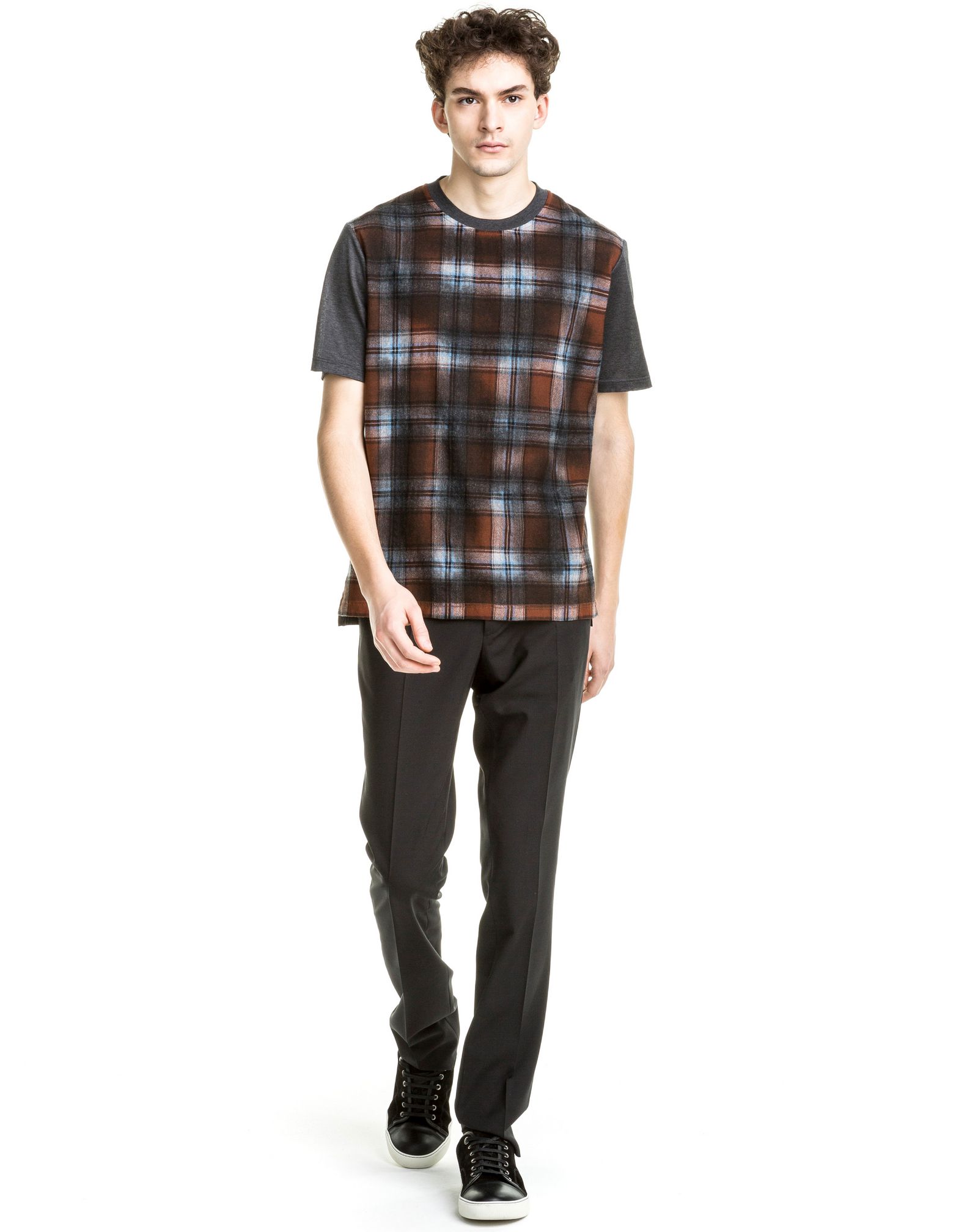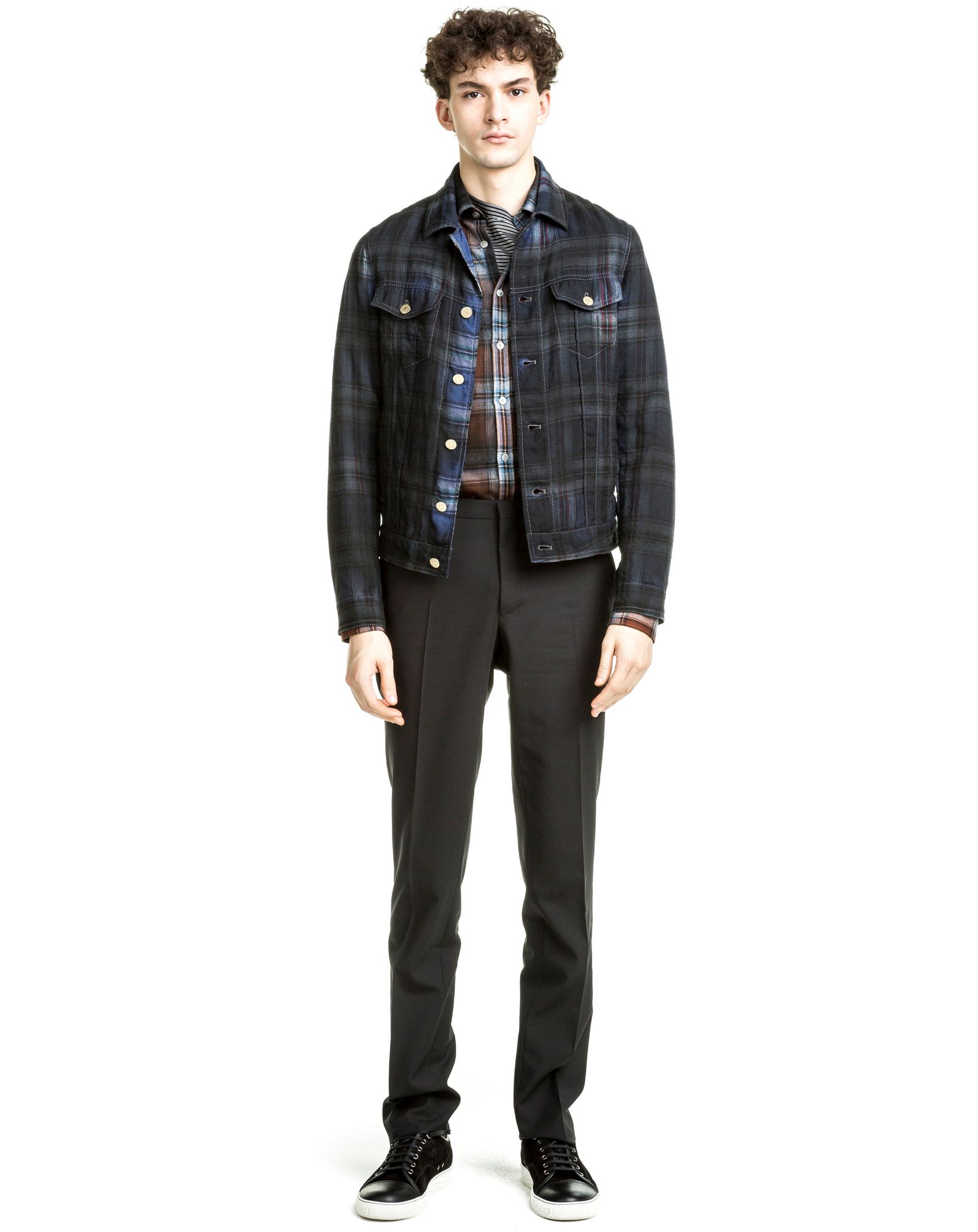 Lanvin launches its pre-fall 2016 men’s collection with a chic wardrobe for its modern urbanite. Traditional silhouettes are revisited with tailored lines and a graphic appeal. Over-dyed check t-shirts and jackets are immediate standouts among a contemporary selection of must-haves. Patchwork and dip-dye treatments also contribute to the lineup with Lanvin updating staples such as the bomber jacket and lightweight sweater.