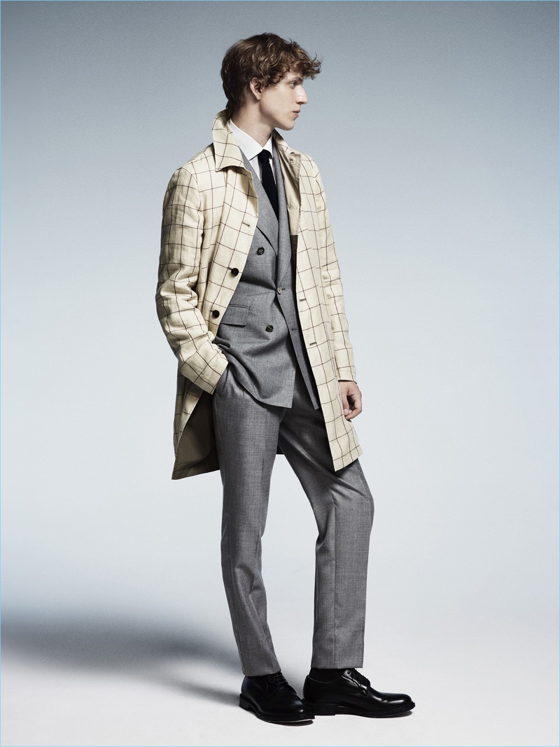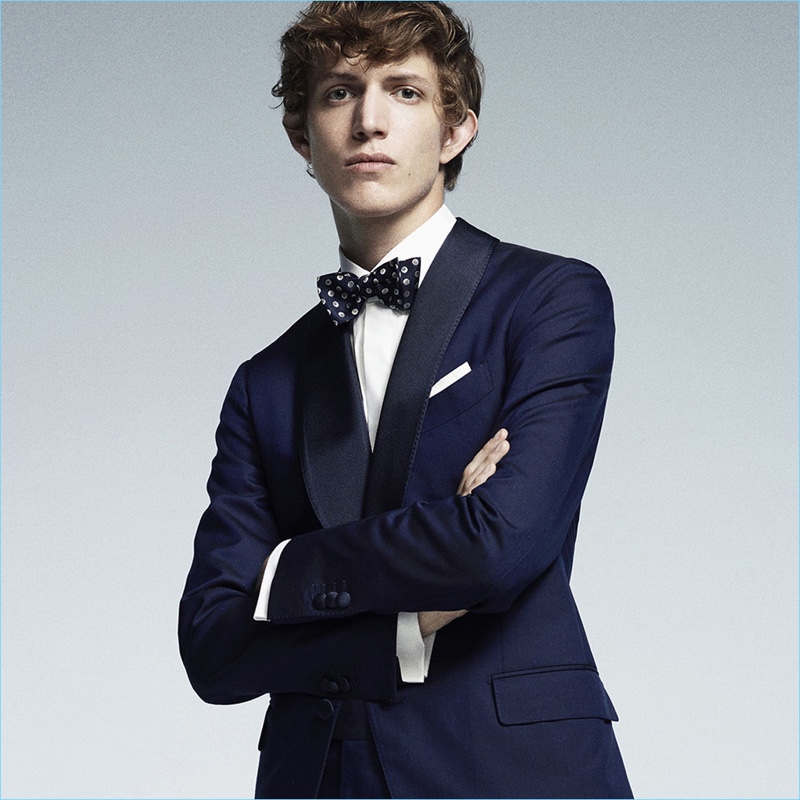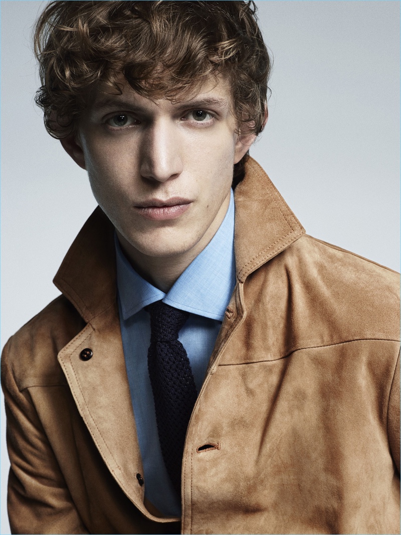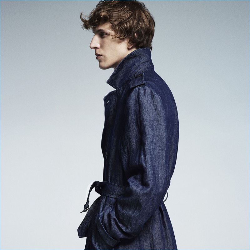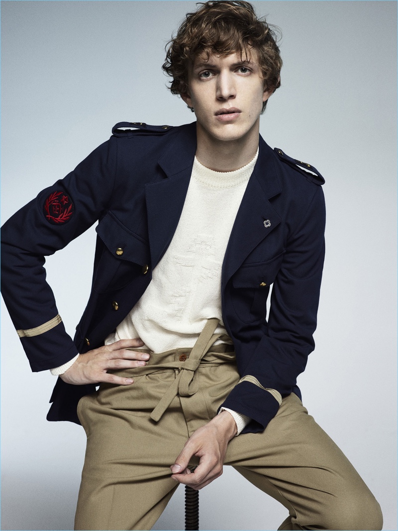 Appearing in studio images, Xavier captivates as he captures the sophisticated spirit of Lardini’s man of style. While sartorial suiting is easily appealing, the label also serves up military-inspired looks. Choice pieces for the season range from sleek field jackets and high waisted trousers to epaulet adorned blazers.