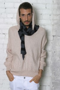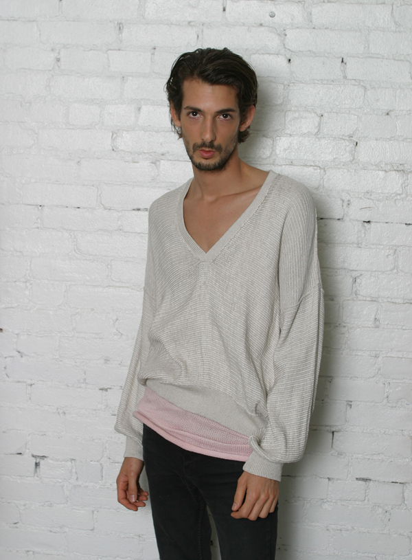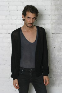 For the last three years, Andersson has been designing and manufacturing his line of urban knitwear. “It’s funny,” he says, “what inspires me is the countryside, and lately I’ve been incorporating equestrian details. But it becomes an urban look in the end.” He sees the influence of country life in the craft of knitting. “These clothes aren’t made in a factory,” he says. “Me and my knitters, we’re five people working. We work with machines, but it’s still hand made.”