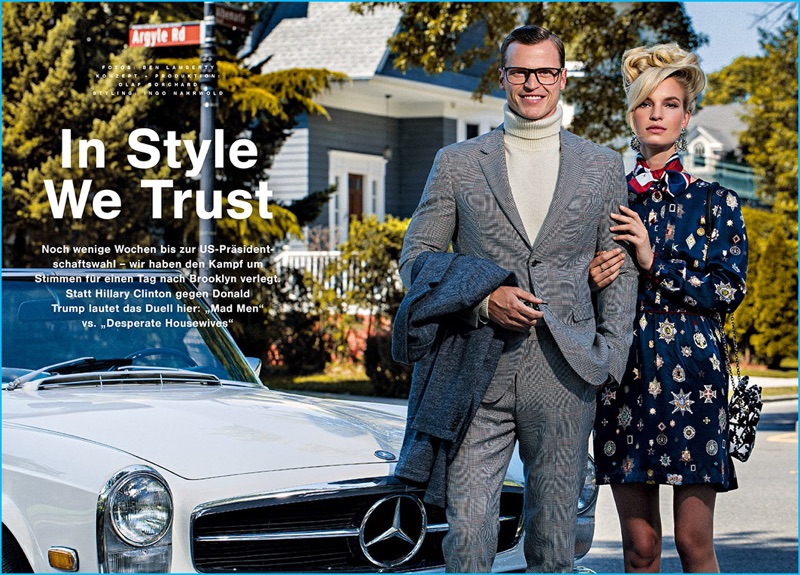 Lars Burmeister turns on the charm as he finds his inner Mad Men character for a 60s inspired story. The leading German model connects with stylist Ingo Nahrwold for the pages of Lufthansa magazine. Entering the suburbs, Lars puts on a bright smile, appearing before the lens of photographer Ben Lamberty. Front and center, Lars dons timely menswear from brands such as Prada and Tommy Hilfiger.