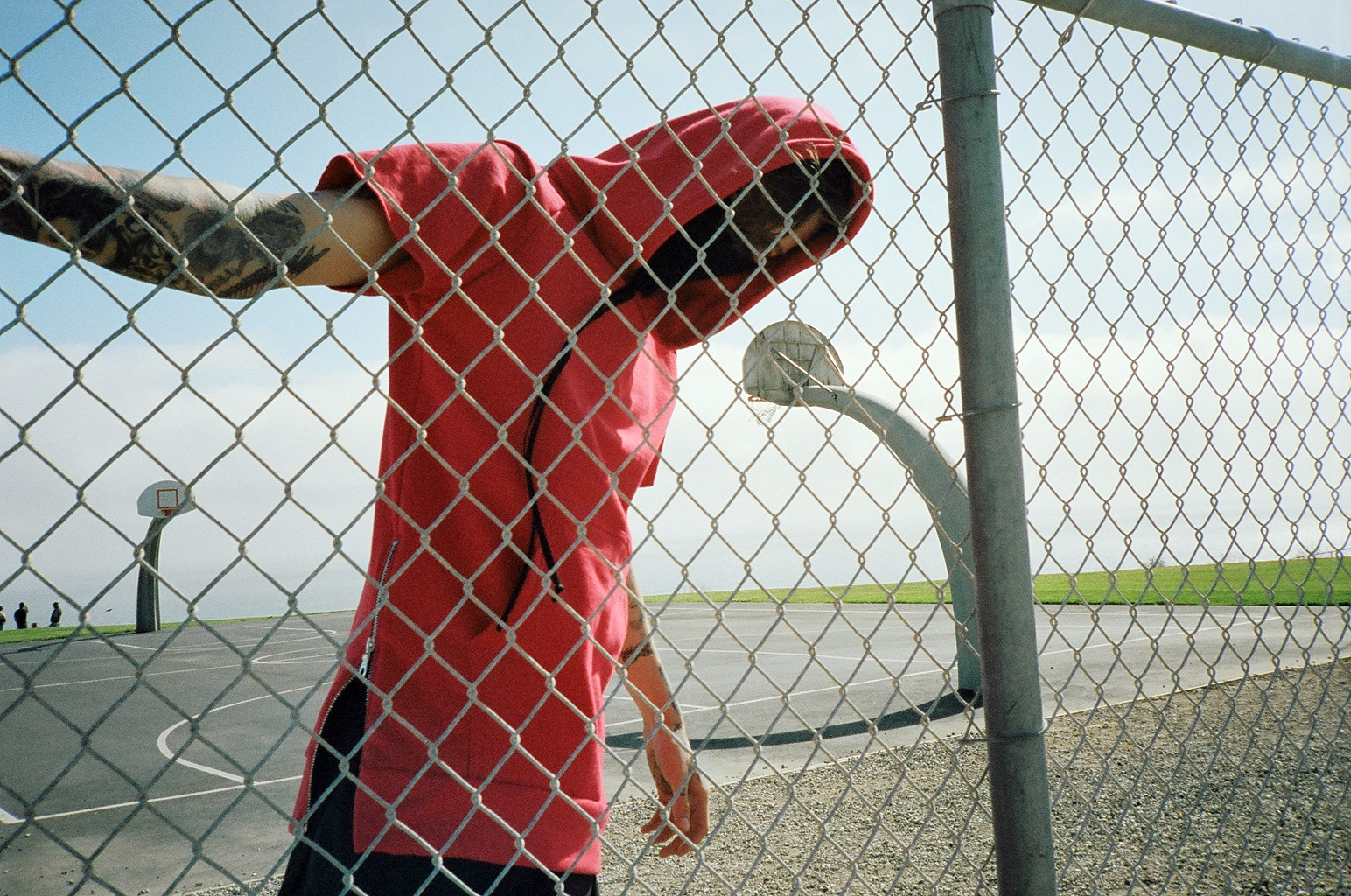 Courtside–Model Lawson Taylor spends a casual sunny afternoon on an isolated basketball court for the summer 2013 campaign of Fear of God Los Angeles. Captured by photographer Dexter Navy, Lawson brushes upon an unsettling calm in the label’s sports and grunge-inspired separates, such as altered sweatshirts and bold red and black gingham print shirts.