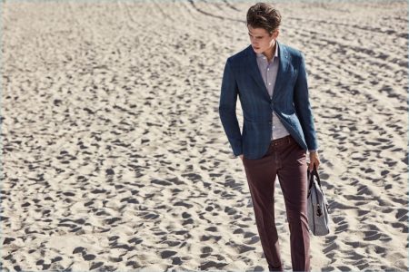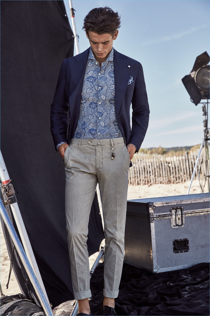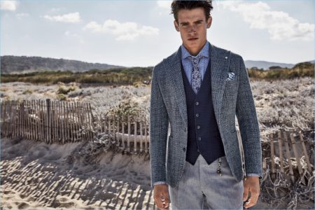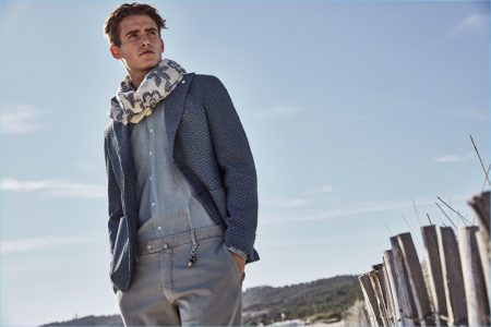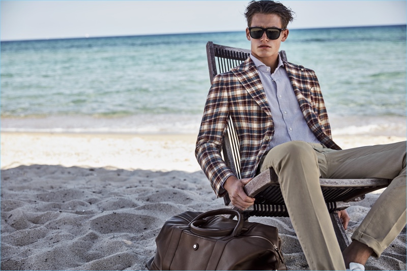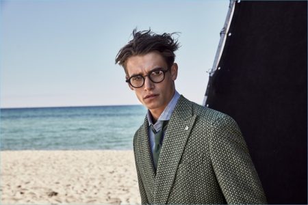 L.B.M. 1911 takes its elegant sensibilities to the beach for a gorgeous spring-summer 2017 outing. The Italian brand connects with model Sascha Wolf for the occasion. Embracing L.B.M. 1911’s proposed styles for the season, Sascha inspires in playful tailoring numbers. The Austrian model wears a sleek mix of prints and colors. Plenty of options for suiting come together as L.B.M. 1911 makes a case for a versatile wardrobe of strong separates. Here, striped shirts, checked jackets, dashing waistcoats, and colorful trousers come together.