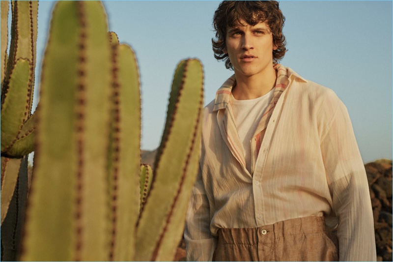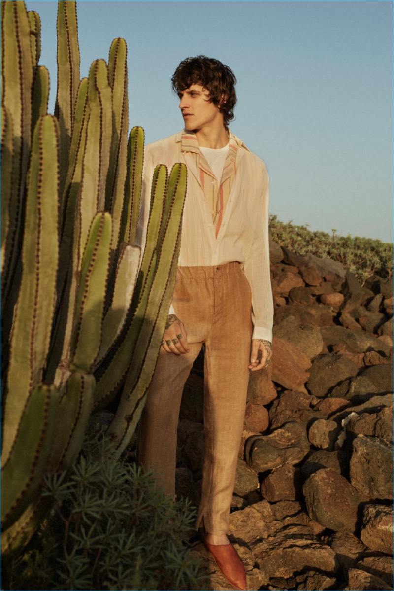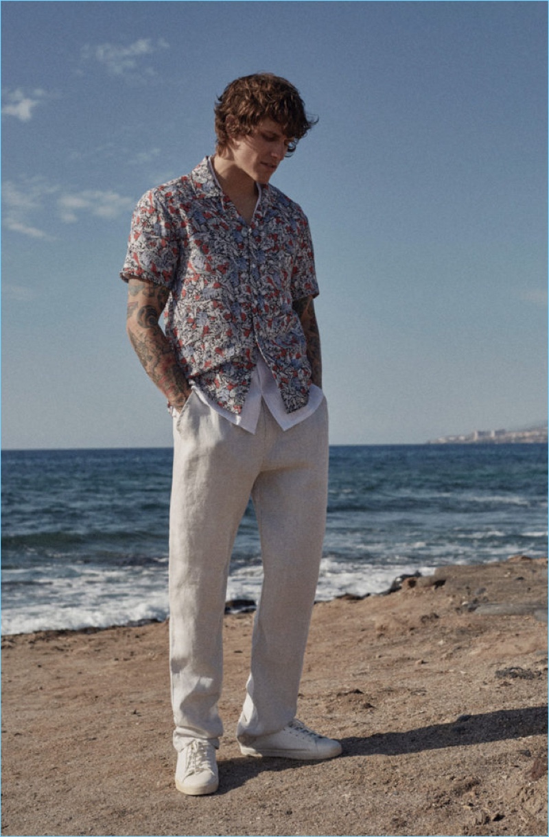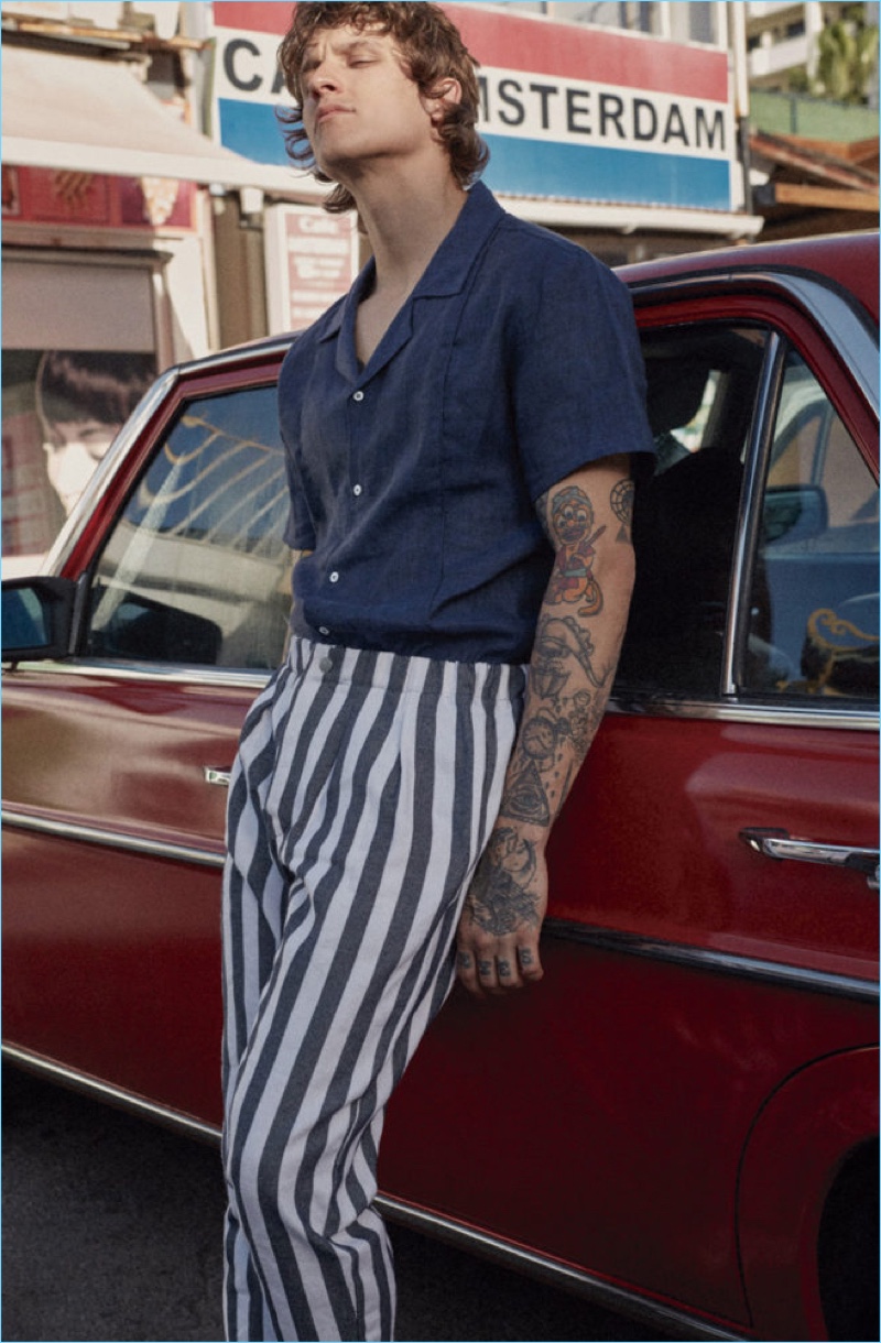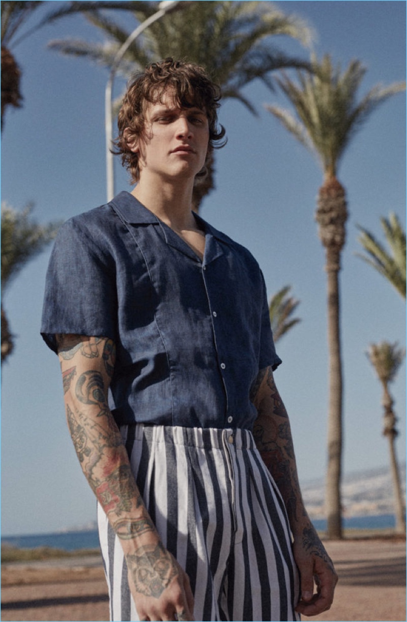 Fox Haus finds a cool face in Leebo Freeman. The tattooed model stars in the brand’s spring and summer 2017 campaigns. Embracing a beach vibe for summer, Leebo links up with photographer Raul Ruz. A relaxing holiday comes to mind as Leebo showcases Fox Haus’ resort-ready styles. Staying cool, Leebo wears the brand’s linen pants and Cuban collared shirts. Adding a classic pop to its fashions, Fox Haus embraces stripes and floral prints for the season.