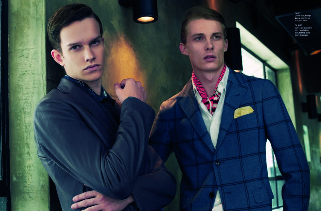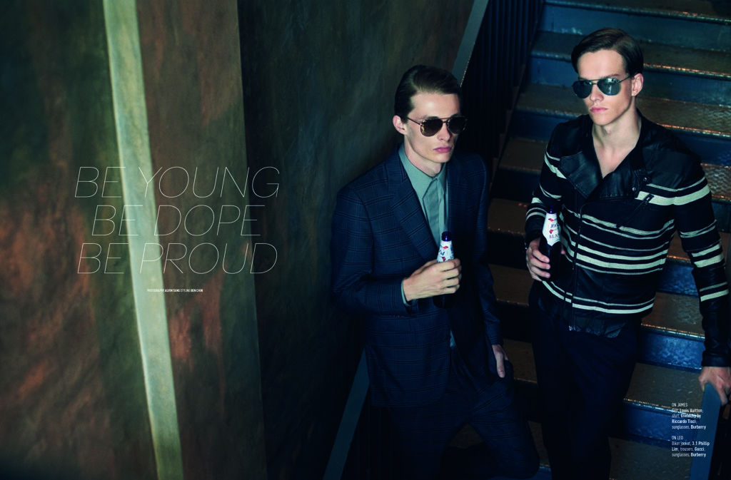Sleek Streets-Turning up the cool for the latest issue of August Man, models Leo Bruno (Premier Model Management) and James Cater (IMG Australia) show off a round of chic layered looks. Capturing an effortless finesse, photographer Alvin Tang brings out an understated, laid back attitude in the boys. Stylist Ben Chin returns to sharpen the models’ style, dressing them in crisp suiting layered over luxe knits and turtlenecks finished with a punch of graphic details for an impeccable editorial spread. / Grooming by Angel Gwee.