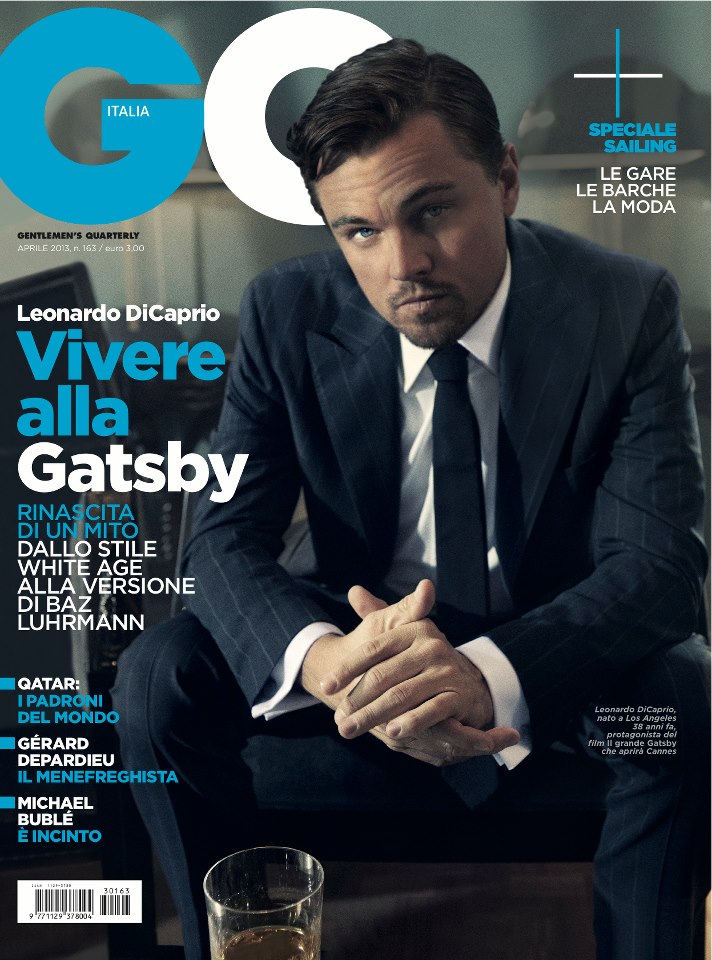 The Great Leo-Actor and filmmaker Leonardo DiCaprio covers the April 2013 issue of Italian GQ, appearing before the lens of Kurt Iswarienko, with styling by Evet Sanchez. Covering the Italian edition of the magazine in a Brunello Cucinelli two-piece pinstriped suit, the “Great Gatsby” leading actor embraces a lifestyle inspired by the 1925 novel written by Francis Scott Fitzgerald, made of opulent and sumptuous parties and style. / Grooming by Kumi.