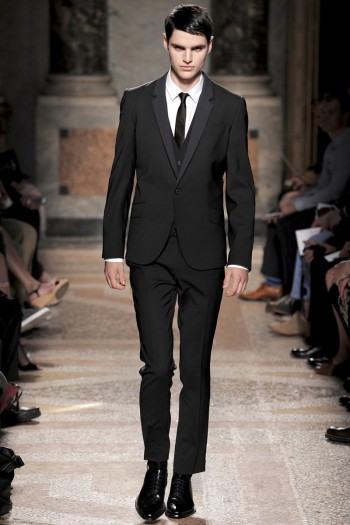 Pure Fashion–Les Hommes creative directors Tom Notte and Bart Vandebosch sought out menswear with an honest interpretation of colors, shapes and fabrications for their spring/summer 2014 collection. Every man needs a great classic suit, but Notte and Vandebosch found a way to make the fundamental relevant for today’s market. Offered clean and cut lean in black or with a stylish punch, featuring leather accents or silk inserts, Les Hommes revamped the essential. Finding an equally smart pacing for sportswear, shorts, silk bombers, leather shirts, printed shirts and tie sets kept the collection fresh.