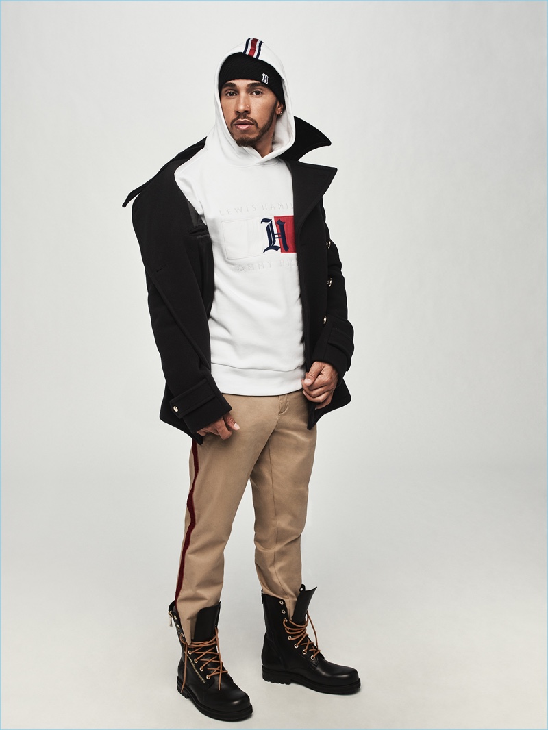 PinLewis Hamilton wears a look from his fall-winter 2018 collaboration with Tommy Hilfiger.