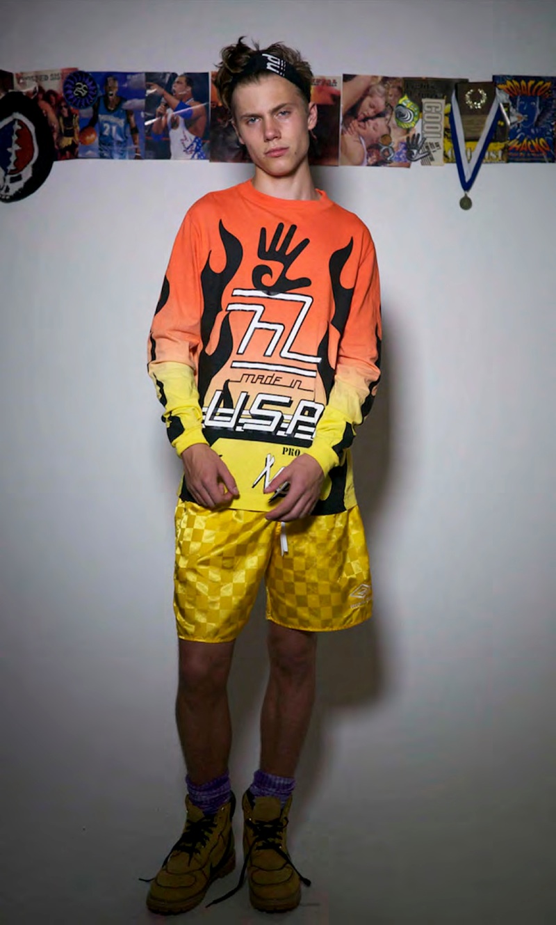 Highland Spring/Summer 2014–Embracing motocross-inspired styles for their spring/summer 2014 collection, Highland enlists Red Citizen model Liam Dean for the range’s lookbook. Featuring oversized baggy fits, the label utilizes their signature penchant for bright colors to reinforce a young attitude. A visual throwback to the slacker styles of the 1990s, Highland’s logo is applied to tops and pants. Rounding out the collection with plaid shorts, striped tops and loose-fitting outerwear, Highland completes a nostalgic journey down memory lane.