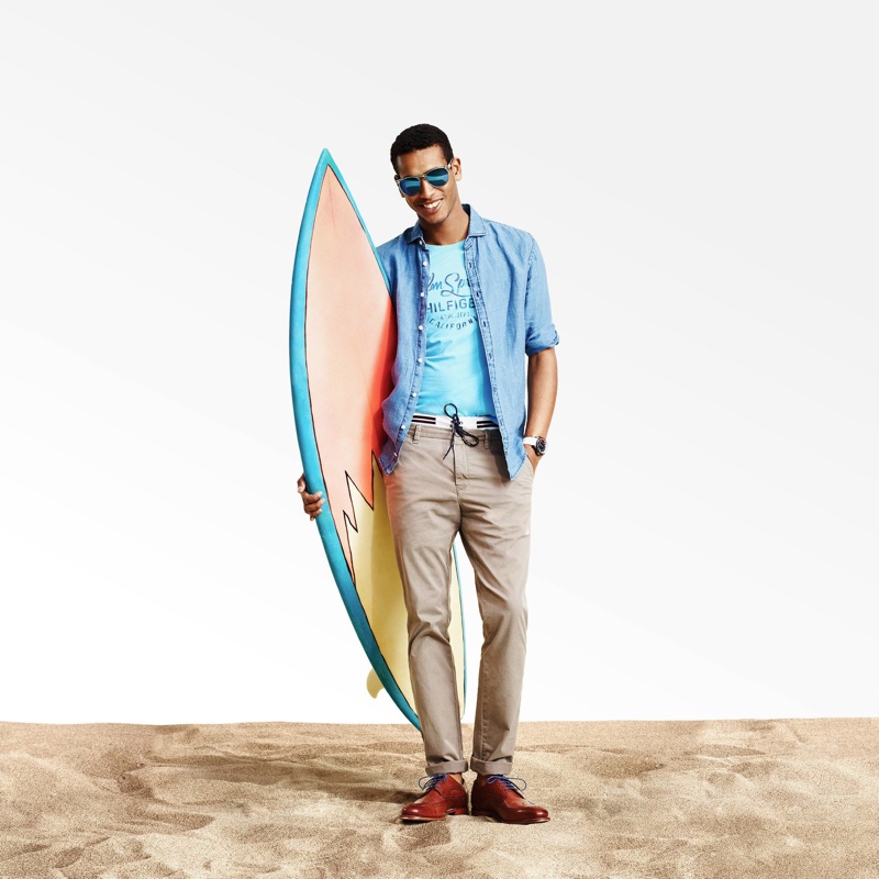 Tommy Hilfiger Men Summer 2014–Thinking of the summer, Tommy Hilfiger’s current collection is the perfect match for the season with the label looking to laid-back visions of the west coast for inspiration. Envisioning days at the beach and evenings around the fire, a collection of comfortable but stylish staples are a welcomed sight. Modeling Tommy Hilfiger’s relaxed summer wardrobe are the same models that make up The Hilfigers in the label’s spring/summer 2014 campaign. Here, Marlon Teixeira, RJ King, Tidiou M’Baye and Viggo Jonasson are captured in twill shorts, cotton sweatshirts, distressed denim, slouchy cardigans and more.