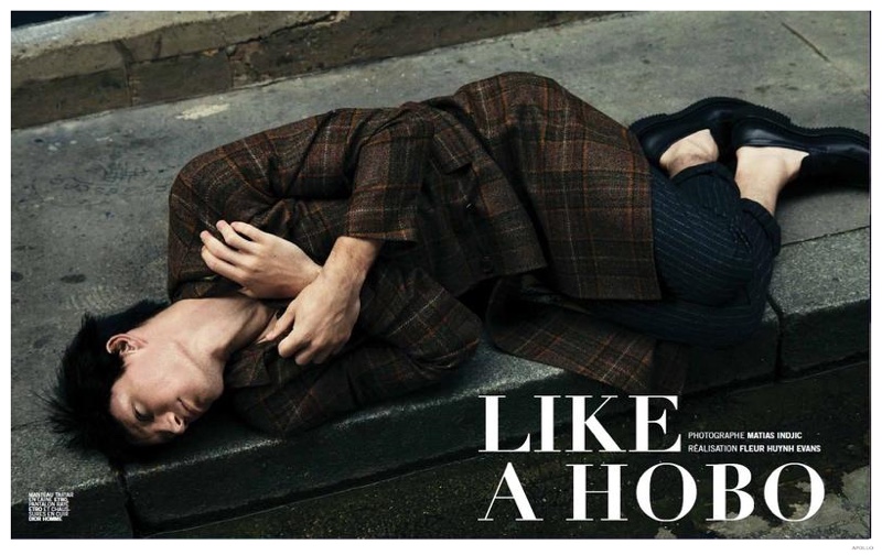 Like a Hobo-Dressed in luxurious fall 2014 garments from labels such as Parisian fashion house Louis Vuitton, model Florian Van Bael takes to the pages of Apollo with a new story lensed by photographer Matias Indjic. The Sight Management model cheekily evokes the image of a hobo as he takes to the streets in a messy jet black wig and desirable ensembles pulled together by stylist Fleur Huynh Evans.