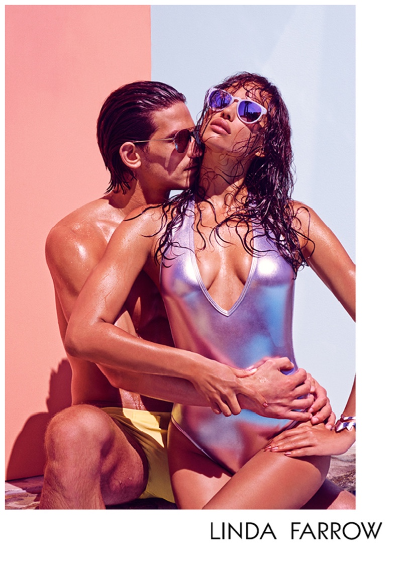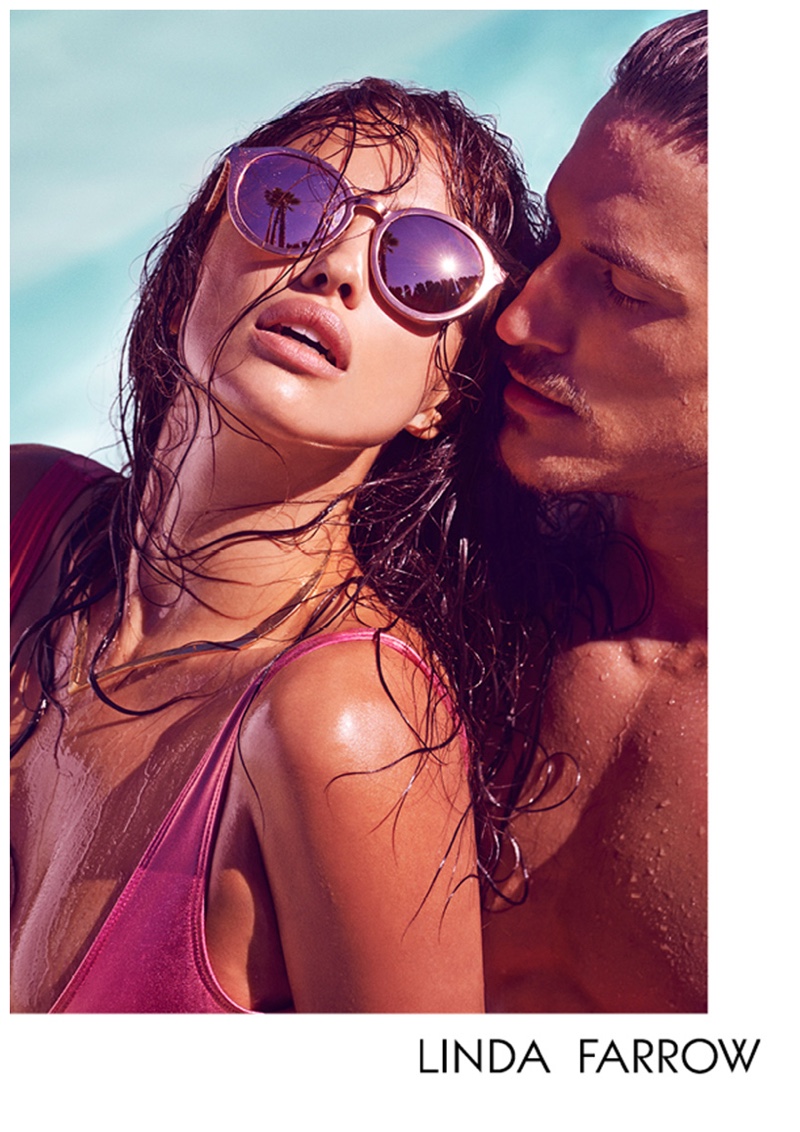 Linda Farrow taps fashion photographer Mariano Vivanco to lense its spring-summer 2015 advertising campaign and the results are tantalizing. Inspired by a wanderlust theme, complete with enriched molten metallics, frosted pastel hues and glossed frames, models Jarrod Scott and Irina Shayk come together as one hot couple. Outfitted by stylist Simon Robins, the pair deliver sensational images, highlighting Linda Farrow’s latest designer sunglasses.