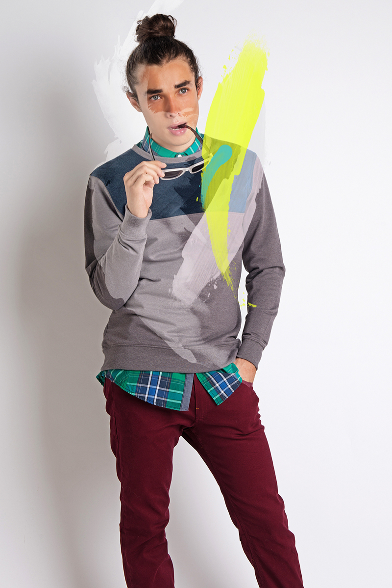 Back to School Fashions–LOB México heads back to school for its latest style outing. Tackling classic varsity inspirations with a mix of modern styles, LOB looks to Mexican artist Ricardo Luévanos to give the lookbook a special flair. Here, model Diego Gonzales is photographed by Ricardo Ramos and styled by Mariana Laban as well as Michelle Ramos, wearing layered ensembles that consist of smart printed shirts, denim, sweatshirts and other items. / Production by Carlos Castellanos. Makeup by Claudia Gamiña. Hair by Carlos Arriola. Video by Fuel Photography.