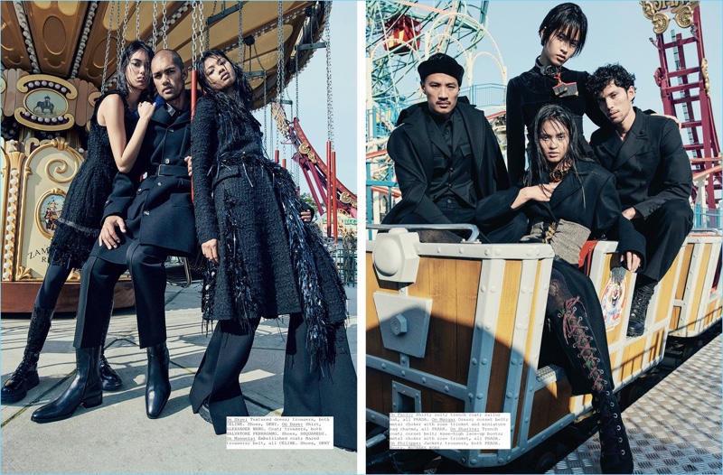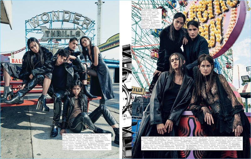 Photographer Danilo Hess takes L’Officiel Manila to Coney Island for its latest cover story. Shot for the magazine’s December 2016/January 2017 issue, the editorial features Filipino models, which include Paolo Roldan, Sharina Gutierrez, and Marga Esquivel. Stylist Connie Berg paints a gothic picture for the outing. Berg pulls together a massive wardrobe of black fashions, spotlighting brands such as IRO, Dsquared2, and Prada.