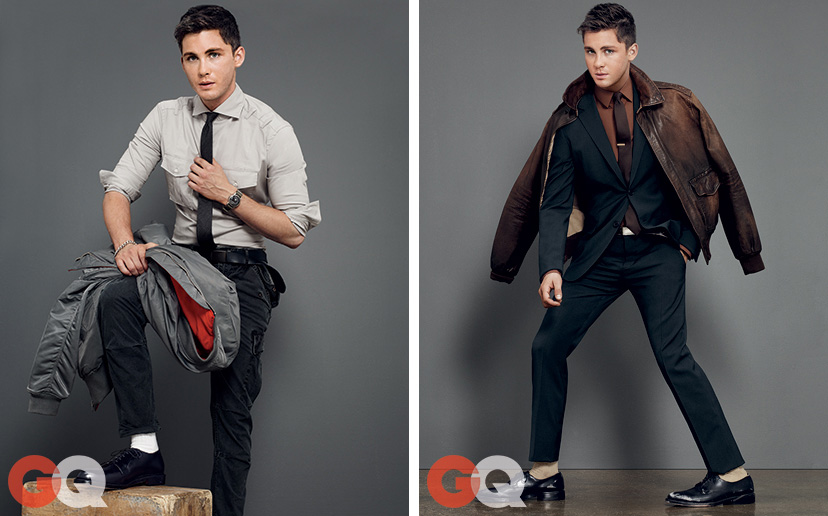 Logan Lerman for GQ-For its November 2014 issue that’s out October 30th, GQ has a little fun with Fury’s military setting, calling on one of the movie’s stars, Logan Lerman for a photo shoot. Photographed by Paola Kudacki, Lerman is captured in the studio, donning smart suits, militaristic shirts with epaulets, leather jackets and more from the likes of Michael Bastian and Dior Homme.