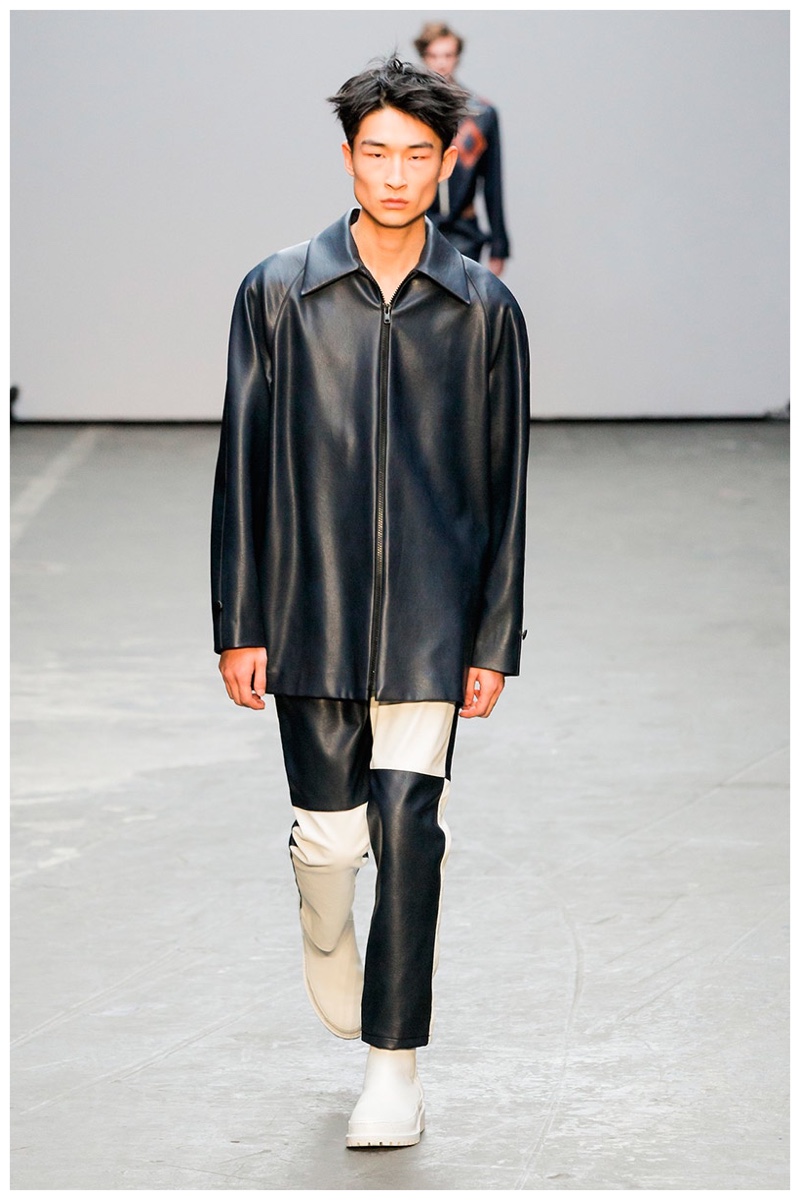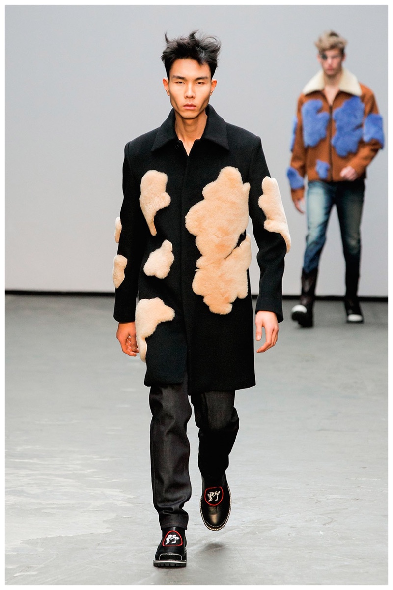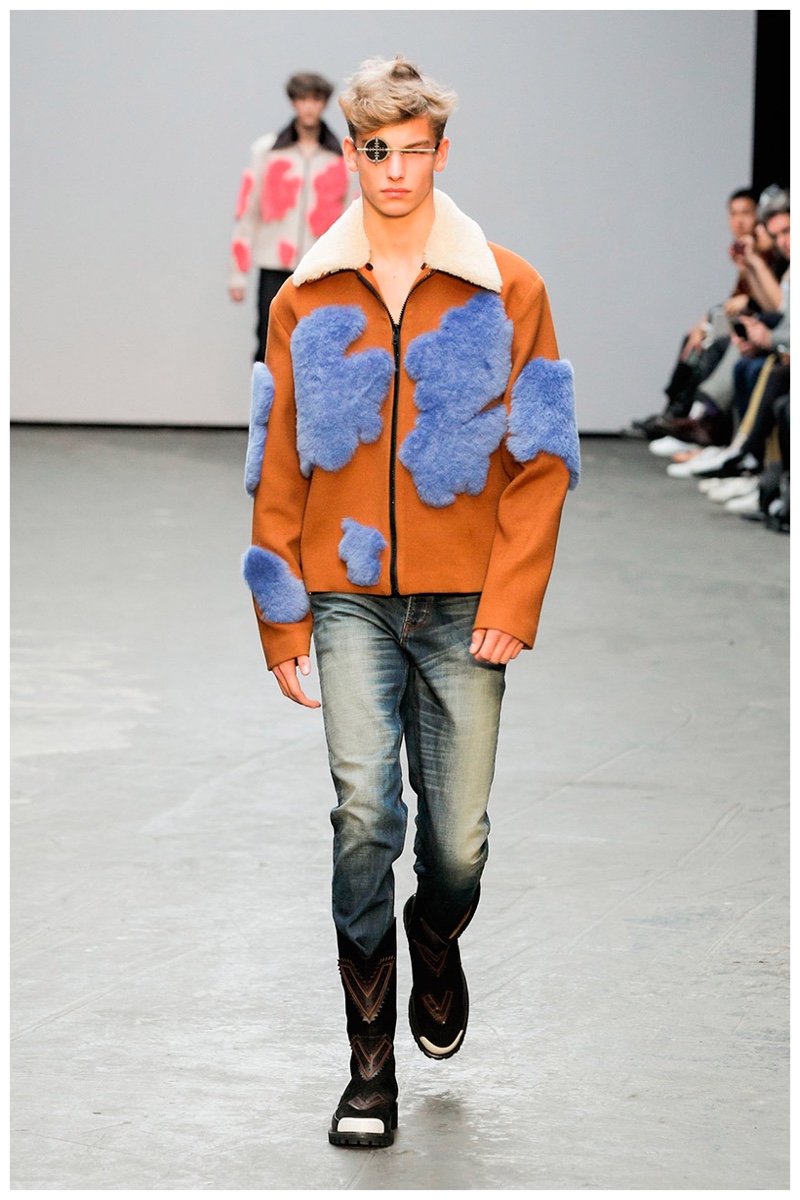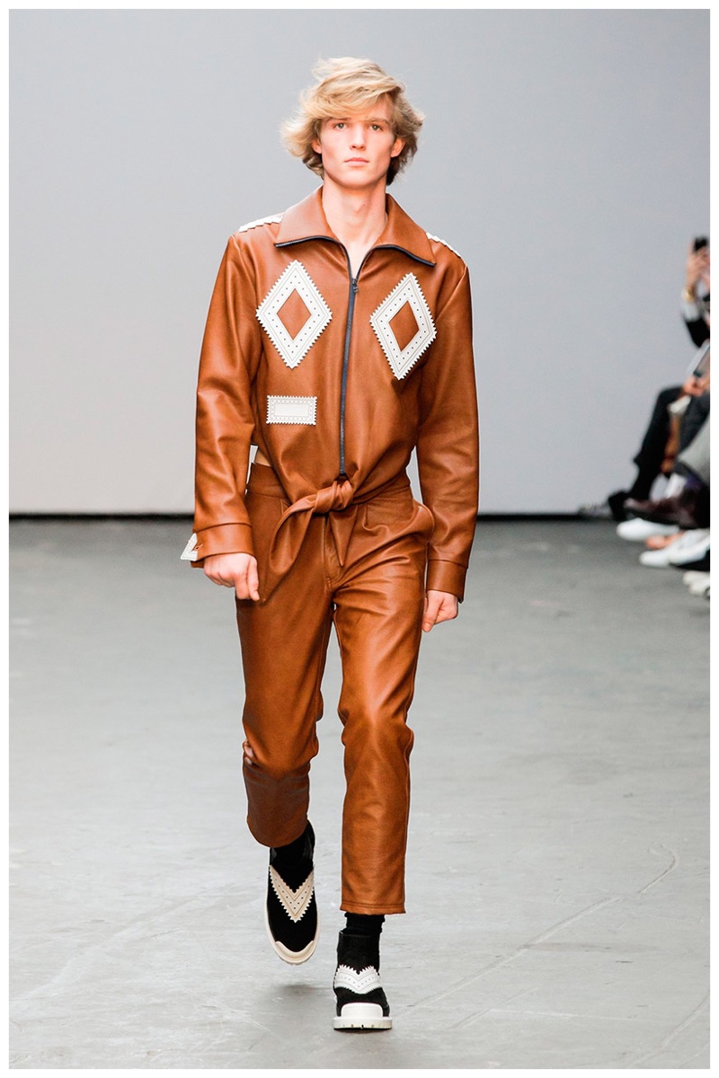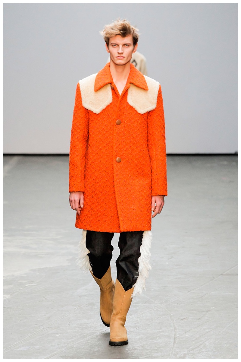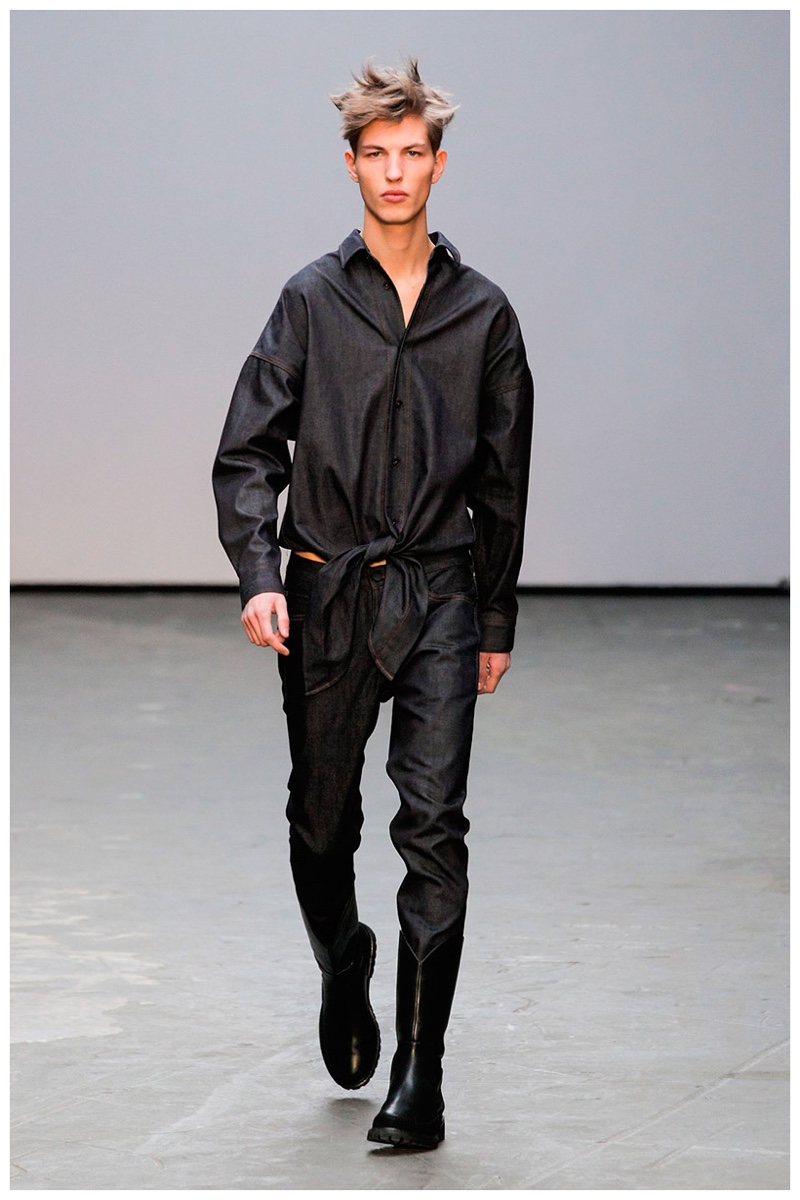 Offering a fresh take on the western motif, Xander Zhou kicked off the season with denim on denim, but didn’t end there. Joining iconic denim staples such as the the denim jacket and ripped denim jeans were embellished, long coats, fringed outerwear, brown leather shorts and color blocked separates.
