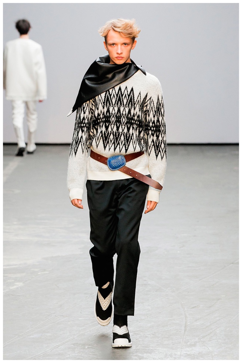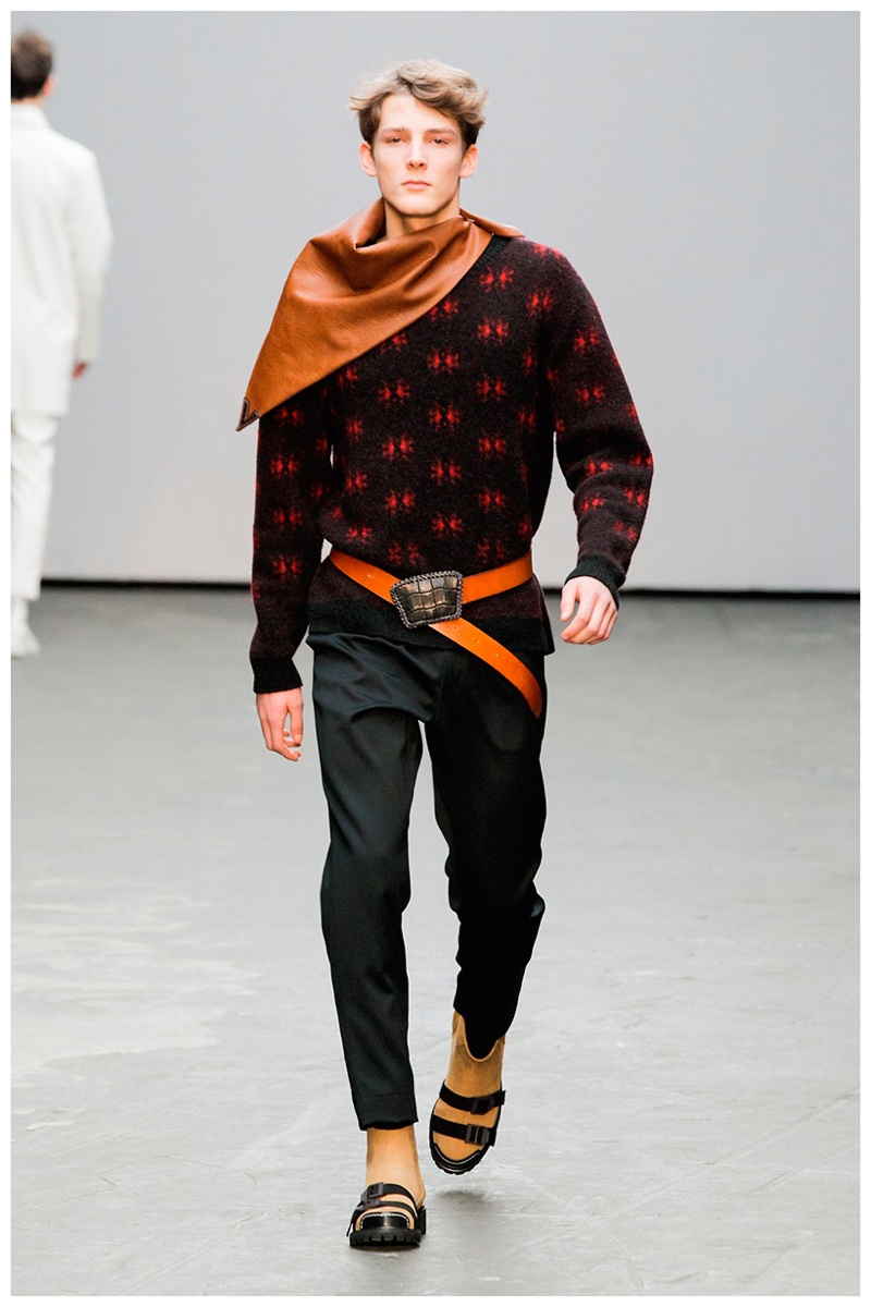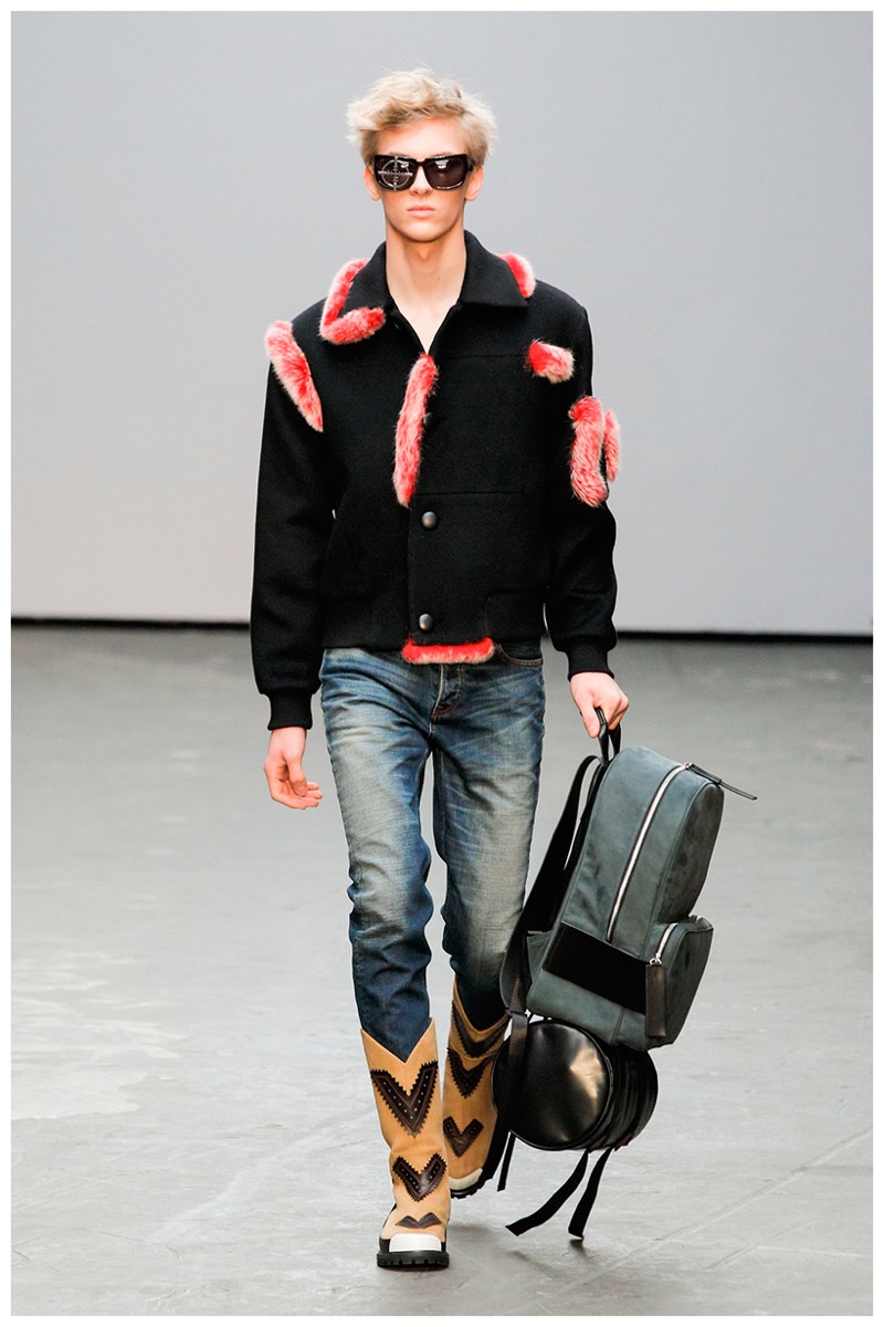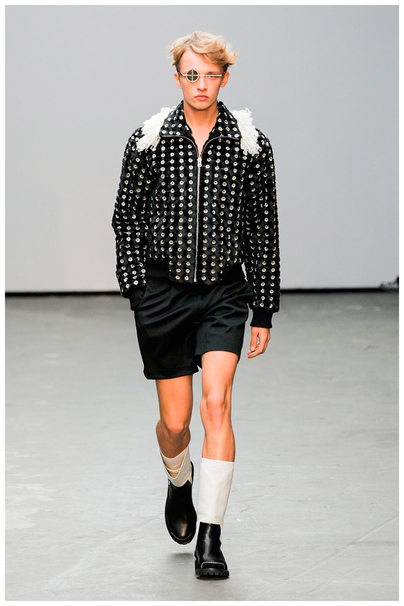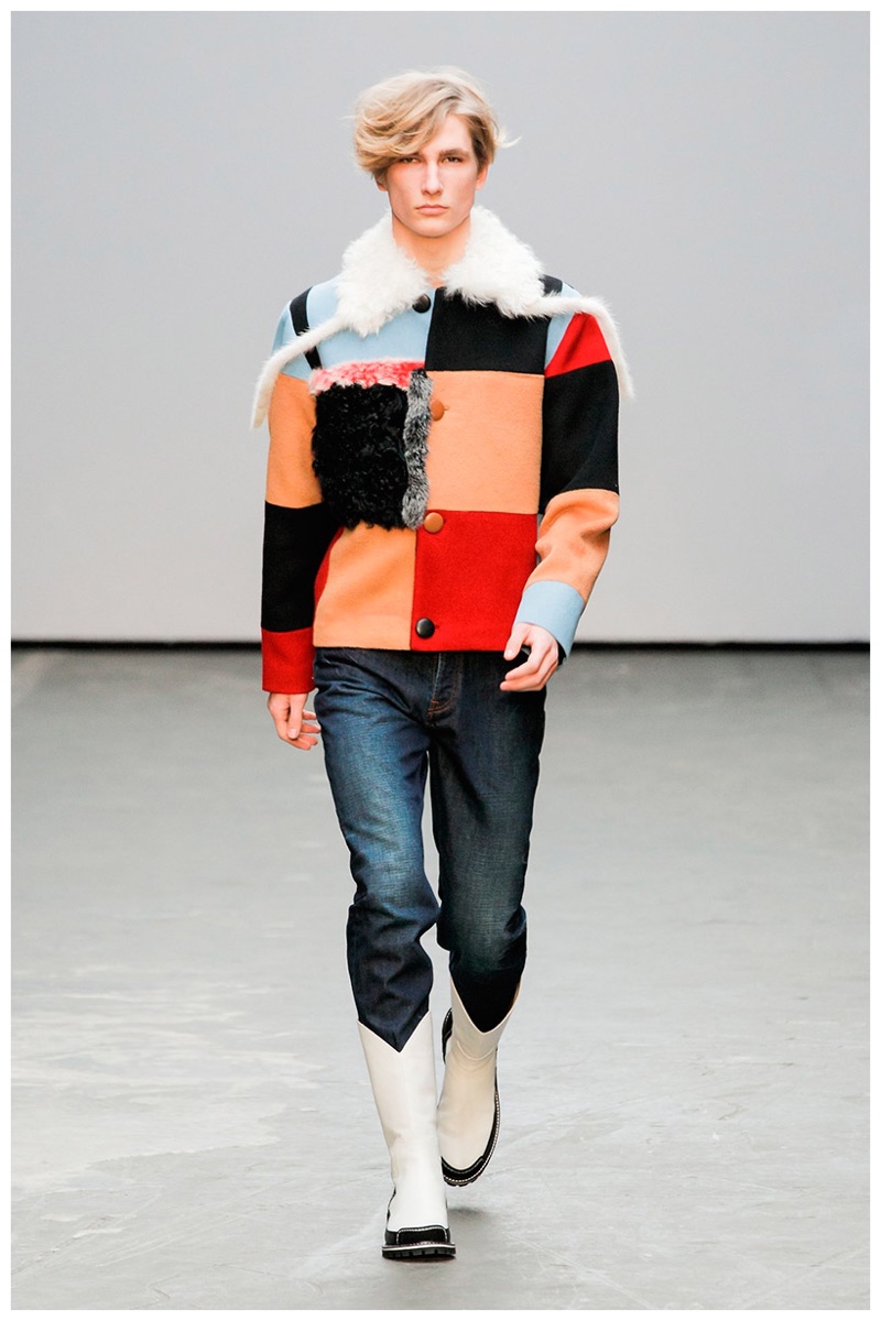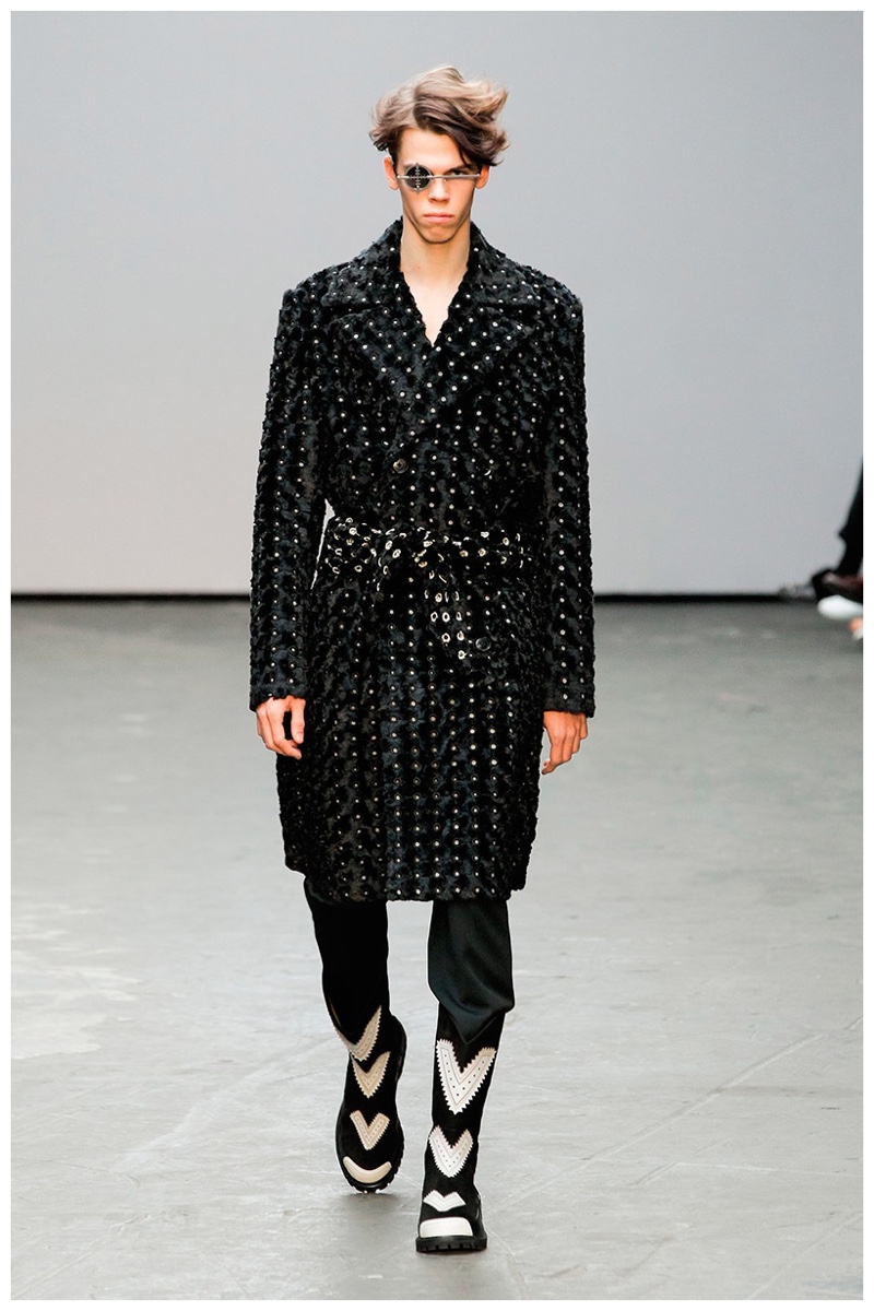 Offering a fresh take on the western motif, Xander Zhou kicked off the season with denim on denim, but didn’t end there. Joining iconic denim staples such as the the denim jacket and ripped denim jeans were embellished, long coats, fringed outerwear, brown leather shorts and color blocked separates.