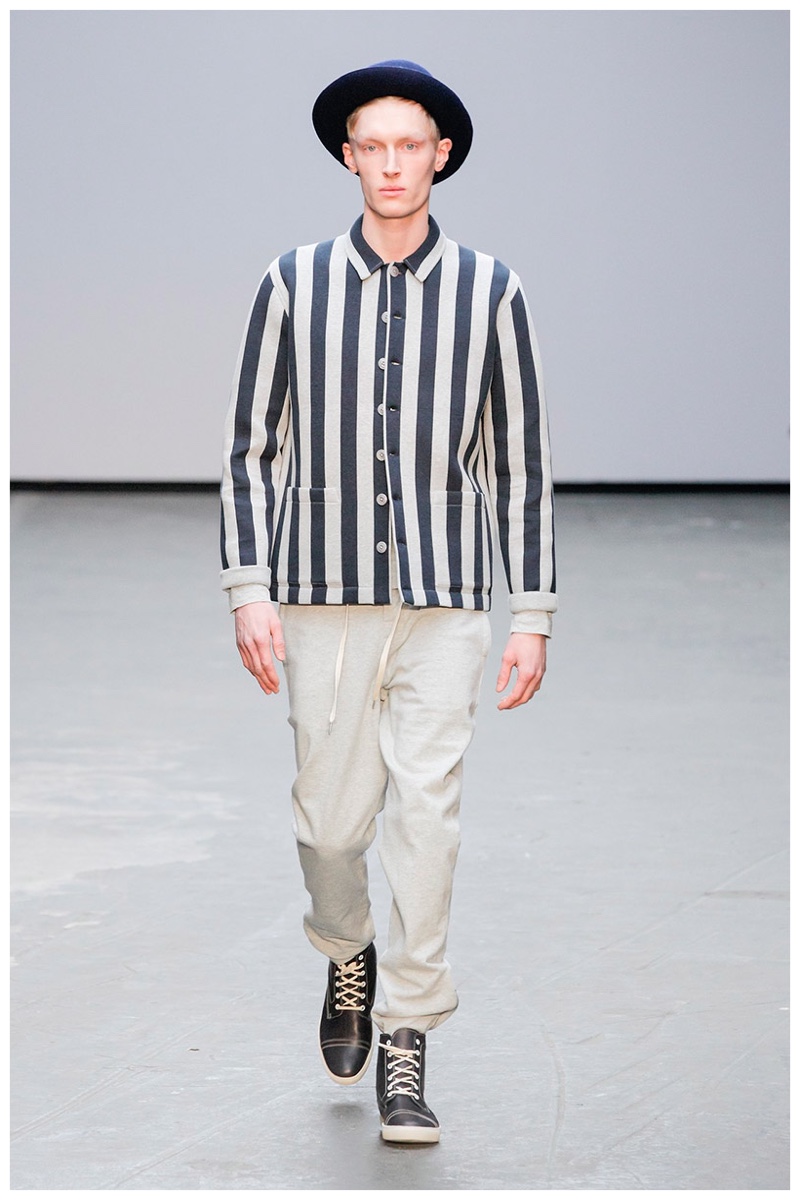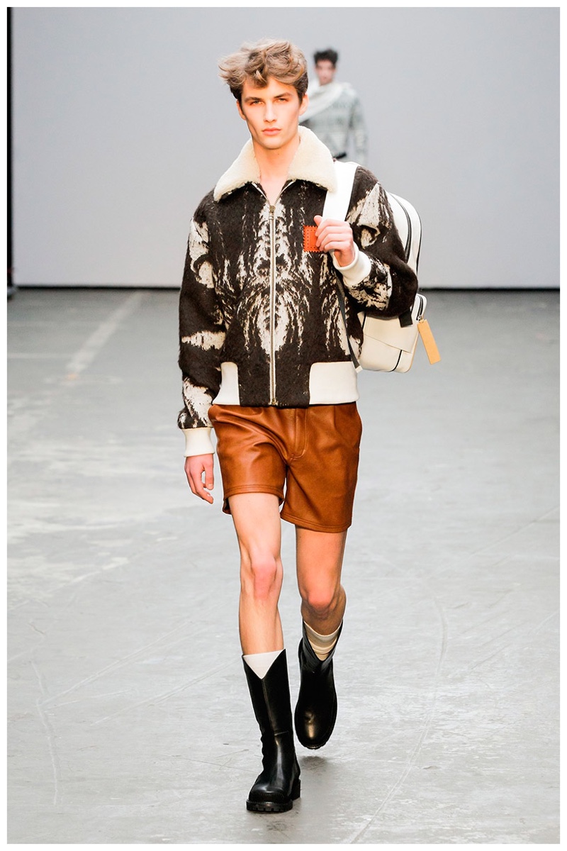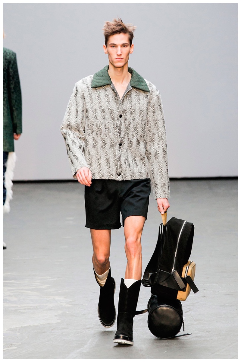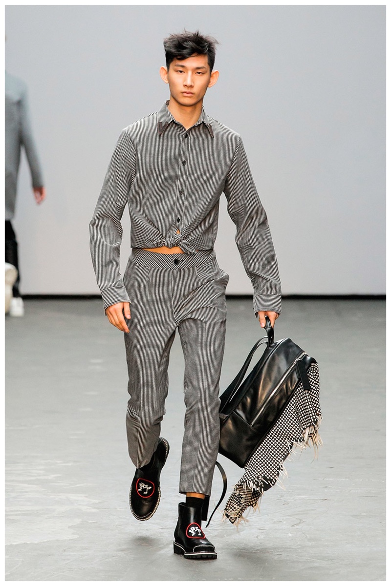 YMC brought a certain sportiness with a subtle refinement to the table. The tracksuit was given a new luxurious form in leather, while items like the bomber jacket, received a winning printed partner in relaxed joggers. Meanwhile, more jackets in tartan and stripe solidified the collection’s casual manner, setting the pace for a comfortable outing that didn’t sacrifice style.