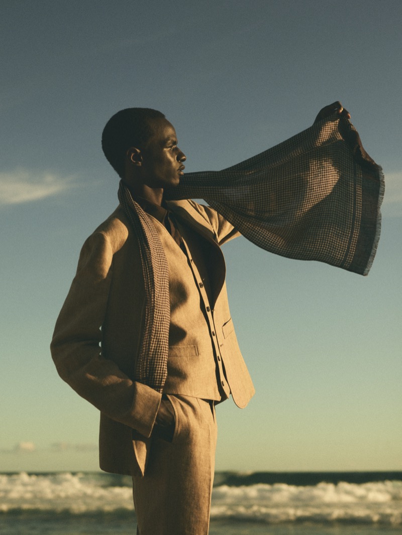 Loro Piana’s resort 2025 collection captures the pulse of a Venetian summer with a wardrobe shaped by linen, salt air, and angular light. Shot between rugged coastlines and pale studios, the clothes settle into their surroundings—sand-colored Bermudas, soft suiting, and collarless shirting reflect the calm of the Lido at dusk.