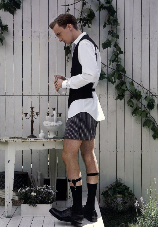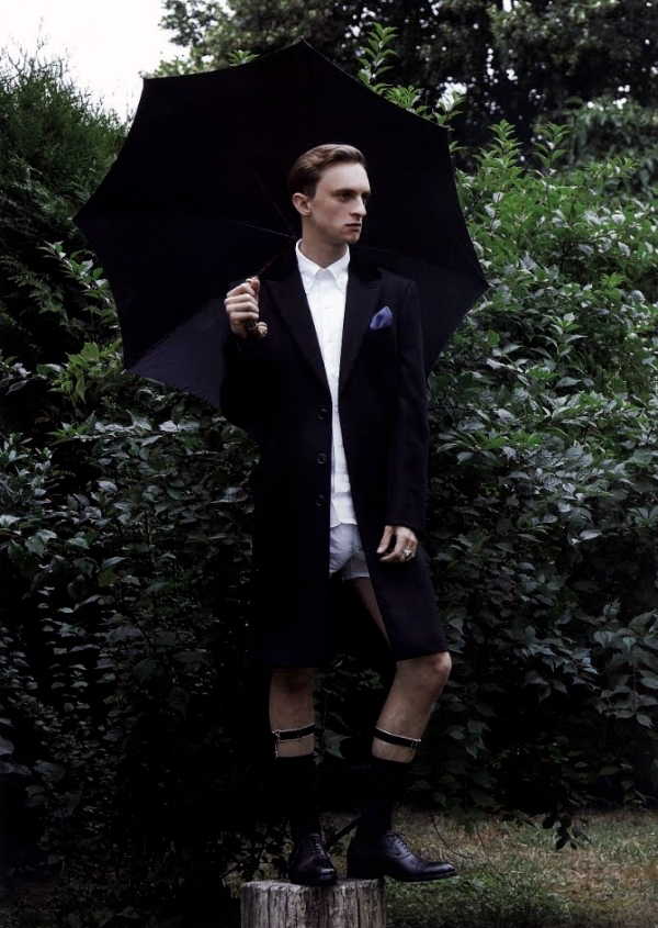 Photographed by Damien Blottière, Marko Brozic is all leg for Common Sense & Man magazine. Opting to go sans trousers, stylist Yoko Miyake draws more attention to the contemporary shirt, waistcoat and jacket. After all, if you can achieve a stellar look for the top half, how important exactly are a pair of trousers?