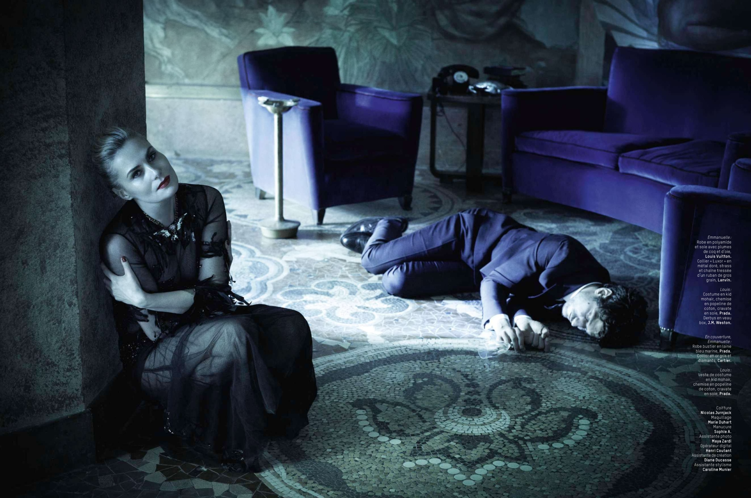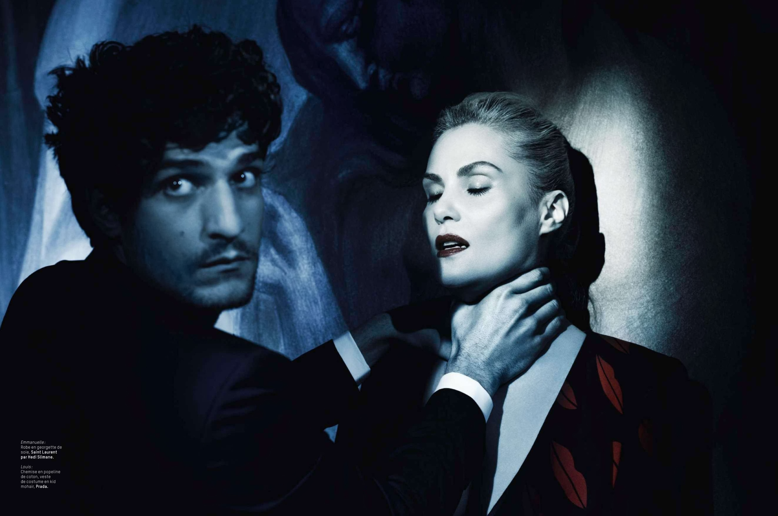 Obsession–French actor Louis Garrel joins actress Emmanuelle Seigner for this month’s cover story from L’Officiel Paris. The face of Valentino Uomo, Garrel plays a man driven to the point of obsession, posing for dark images by photographer Michelangelo di Battista. Pursuing Seigner’s character, Garrel is styled by Rossella Tarabini, sporting smart styles from French labels that include Lanvin and Saint Laurent. / Hair by Nicolas Jurnjack. Makeup by Marie Duhart.