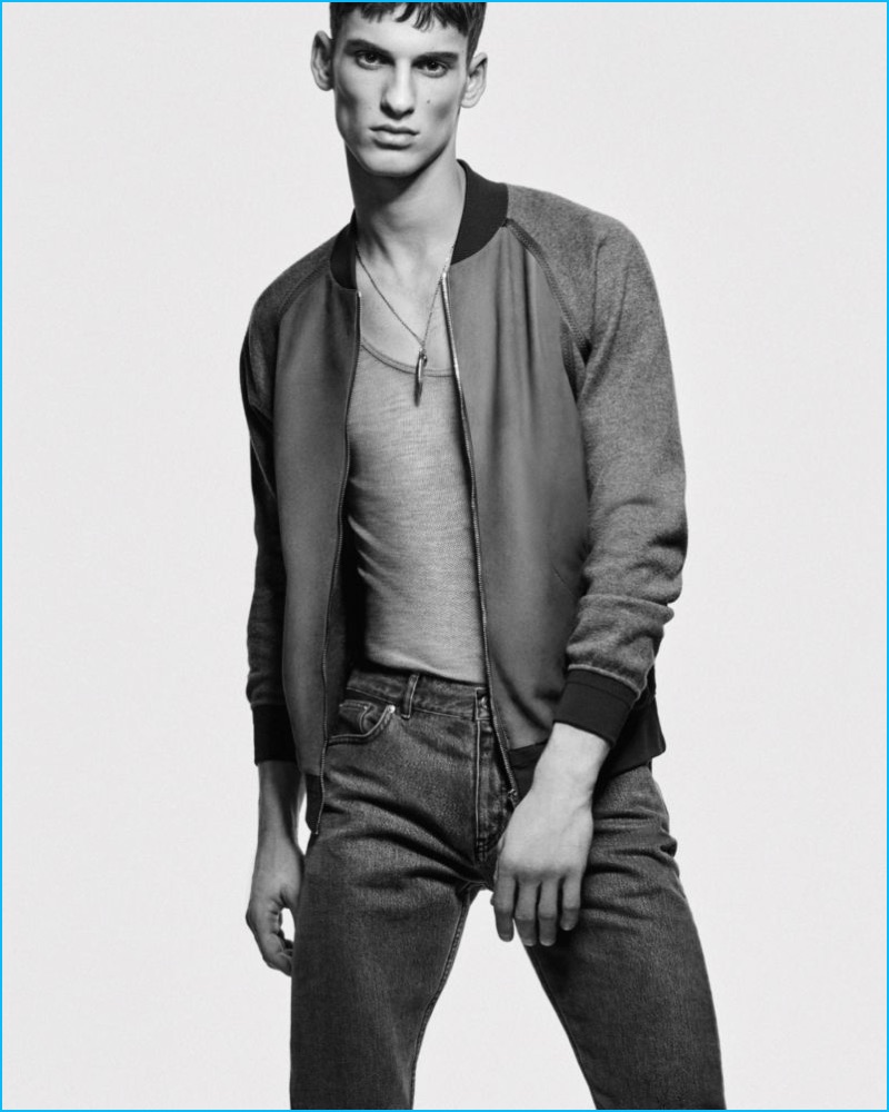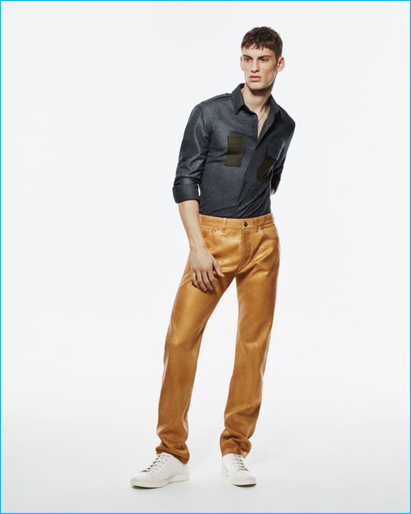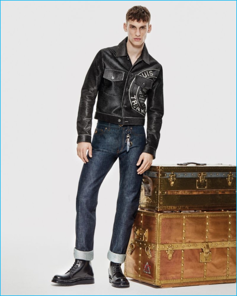 Model David Trulik poses in jeans from Louis Vuitton's exclusive denim collection.Pin