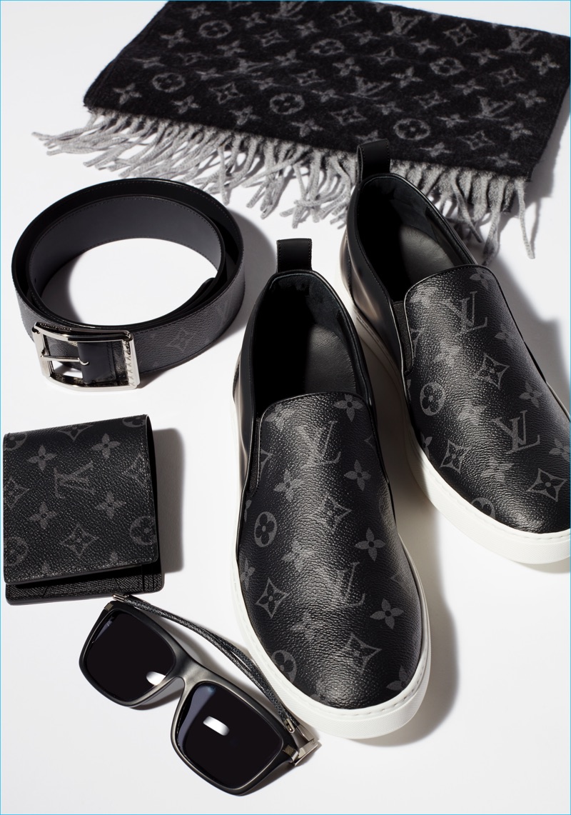 Louis Vuitton’s Monogram Eclipse collection includes choice footwear such as the fashion house’s leather slip-on sneakers.
