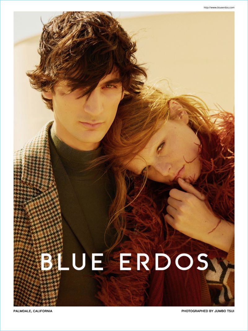 Luca Lemaire finds himself in Palmdale, California for his latest work. The Belgian model stars in the fall-winter 2018 campaign of Blue Erdos. Bringing a quiet confidence to the advertisement, Luca appears before photographer Jumbo Tsai. Meanwhile, Luca is styled by Brais Vilaso. Donning a tailored fall wardrobe, Luca is joined by blonde beauty Hanne Gaby Odiele. A chic vision, Luca dons a lineup of warm sweaters and sleek coats.