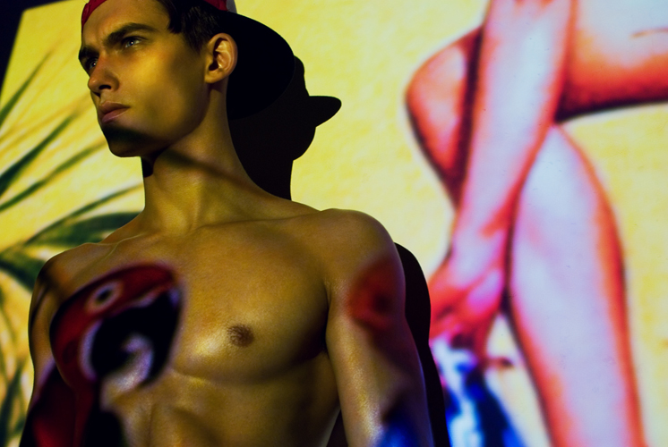 The Doll House–Ming model Lucas Garcez appears before the lens of Nigel Lew for a story captured in Shanghai. Juxtaposing quirky projections with cheeky fashions, Lucas notes the end of summer with a grand bang.