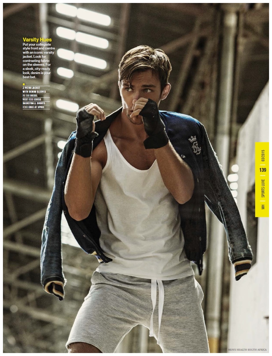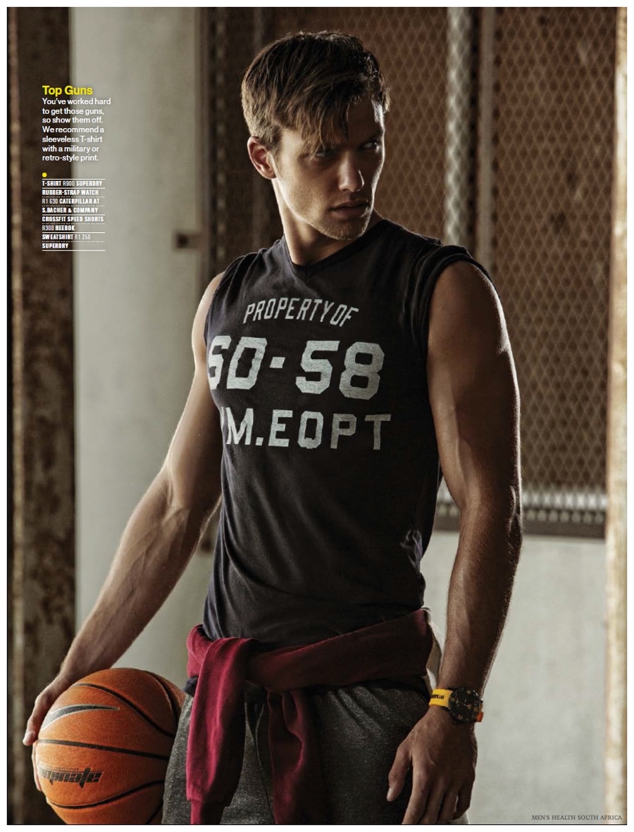 Heading outdoors for a sporty new shoot from the March 2015 issue of Men’s South Africa, Way Management model Lucas Garcez is front and center. Displaying an active attitude, Lucas connects with photographer Garreth Barclay. Putting the focus on gym-ready fashions, Lucas is a healthy vision in Diesel, Guess, Reebok and more.
