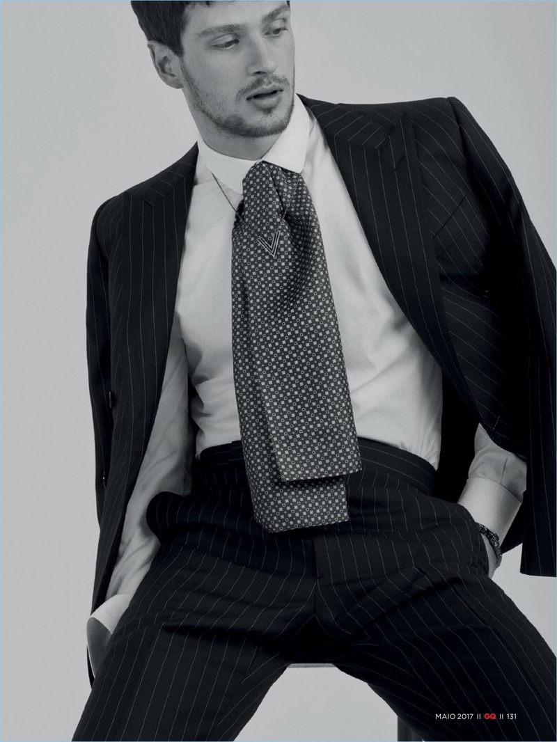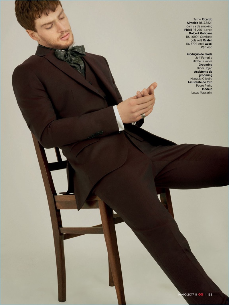 Thiago Ferraz styles a dandy new story for the May 2017 issue of GQ Brasil. The story brings together model Lucas Mascarini and photographer Hick Duarte. Lucas takes to the studio for the outing, which is entitled New Lord. Sartorial looks come together with a sophisticated flair. A standout wardrobe features dashing pieces from the likes of Ralph Lauren, Burberry, and Bottega Veneta. / Grooming by Dindi Hojah.