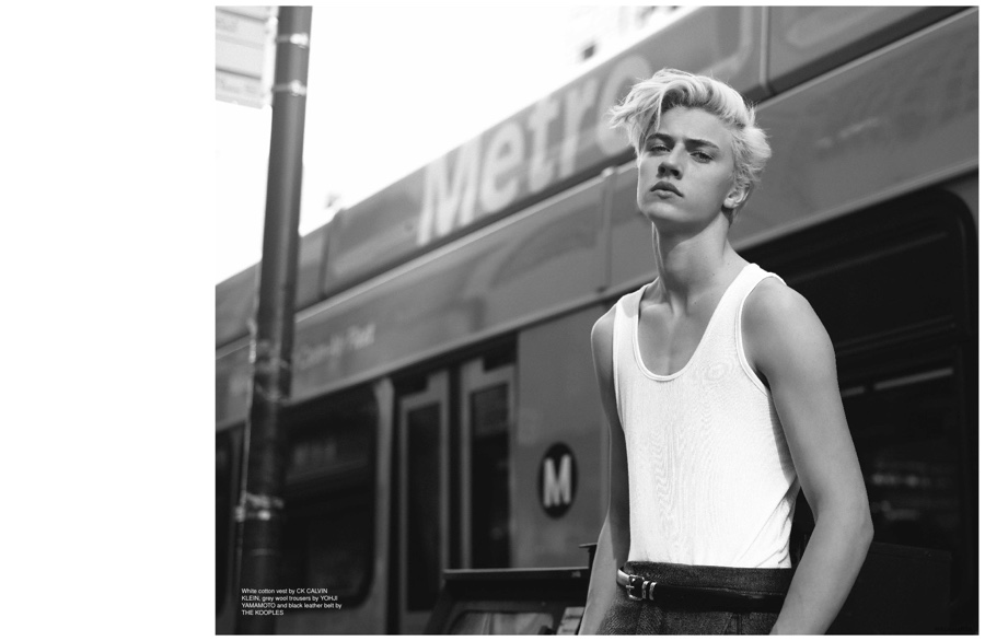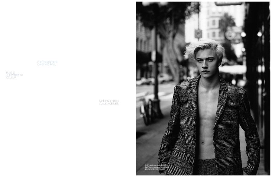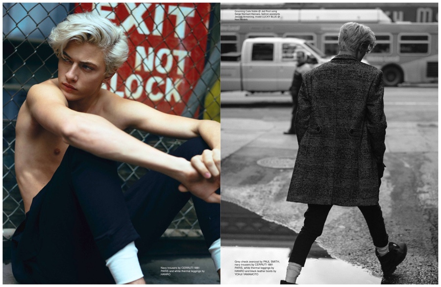 Chad + Paul photograph Next Los Angeles model Lucky Blue for the latest cover story from British fashion magazine Rollacoaster. Outfitted by stylist Claudia De Meis, Lucky is captured in a lean wardrobe featuring quintessential pieces from an array of fashion labels that include Yohji Yamamoto, The Kooples and Christophe Lemaire.