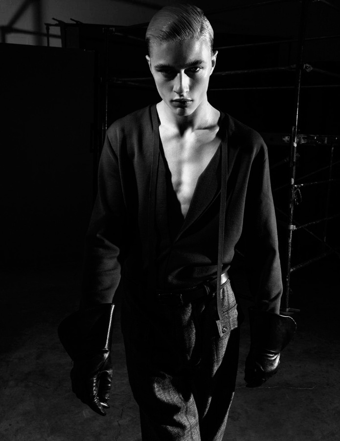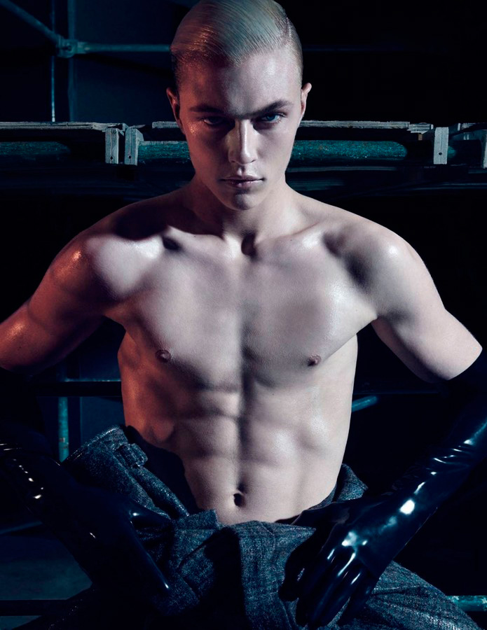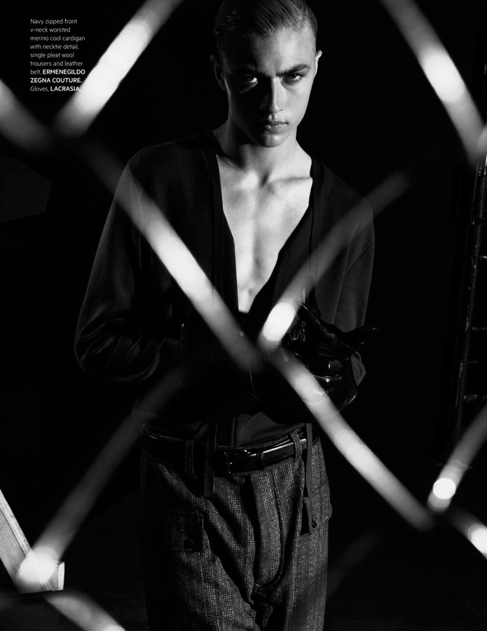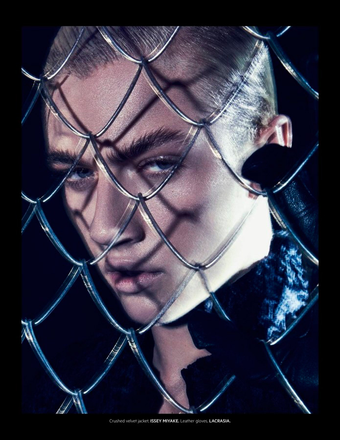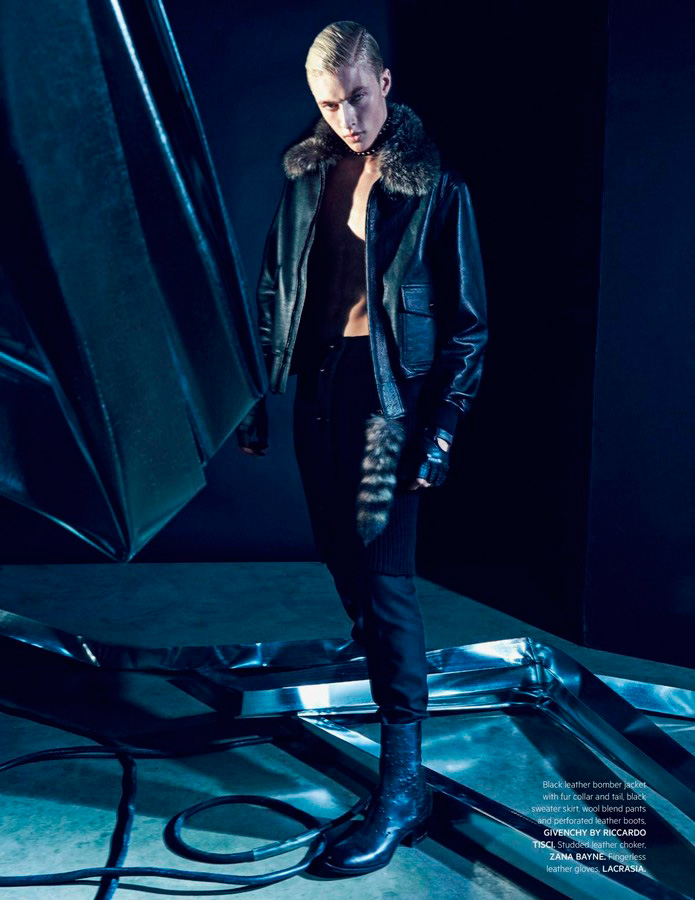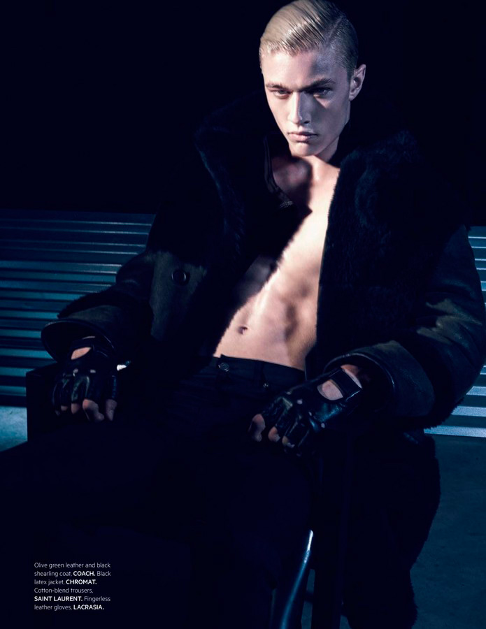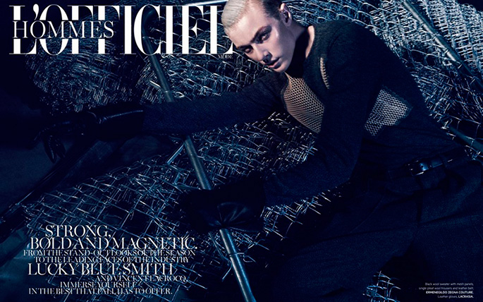 Lucky Blue Smith embraces a dark edge as he covers the fall-winter 2015 issue of L’Officiel Hommes Singapore. Posing for a mix of color and black & white images, Lucky is photographed by Jack Waterlot. Set against an industrial inspired backdrop, black fashions are front and center for the season. Lucky models must-have pieces from the likes of Givenchy, Ermenegildo Zegna Couture and Saint Laurent. Accessorized with bondage-inspired articles from the likes of Lacrasia, Lucky is styled by both Jack Wang and Jumius Wong.