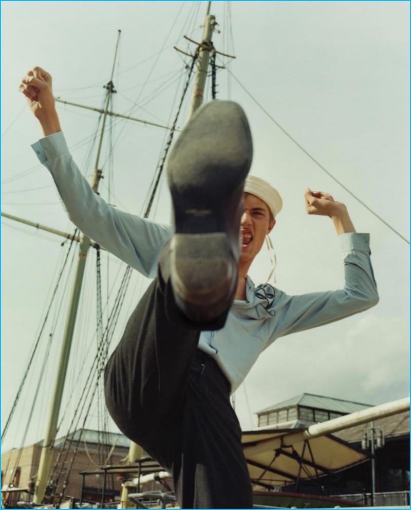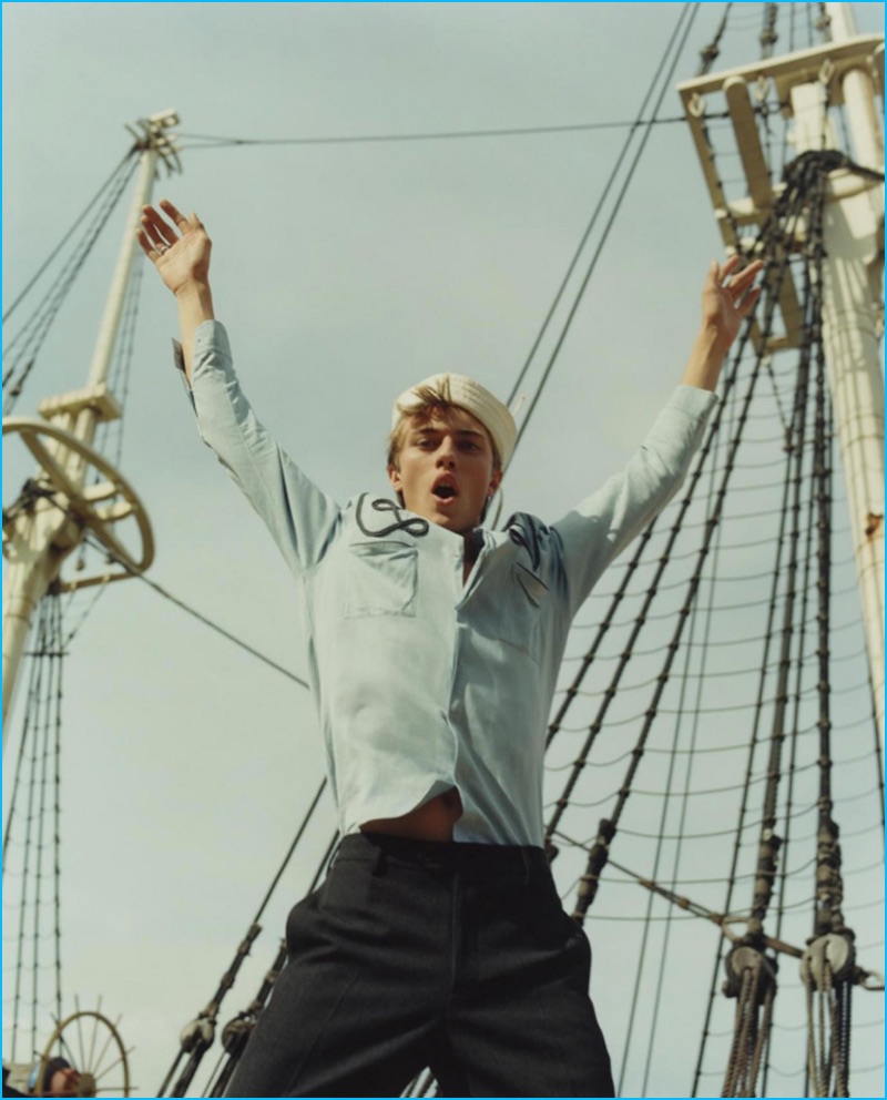Lucky Blue Smith channels his inner sailor for ES magazine’s most recent cover. Laura Coulson photographs the American model in an oversized plaid coat from Italian fashion house, Fendi. Anish KP also styles Lucky in nautical-inspired pieces from an array of brands, which includes Prada and Lanvin.